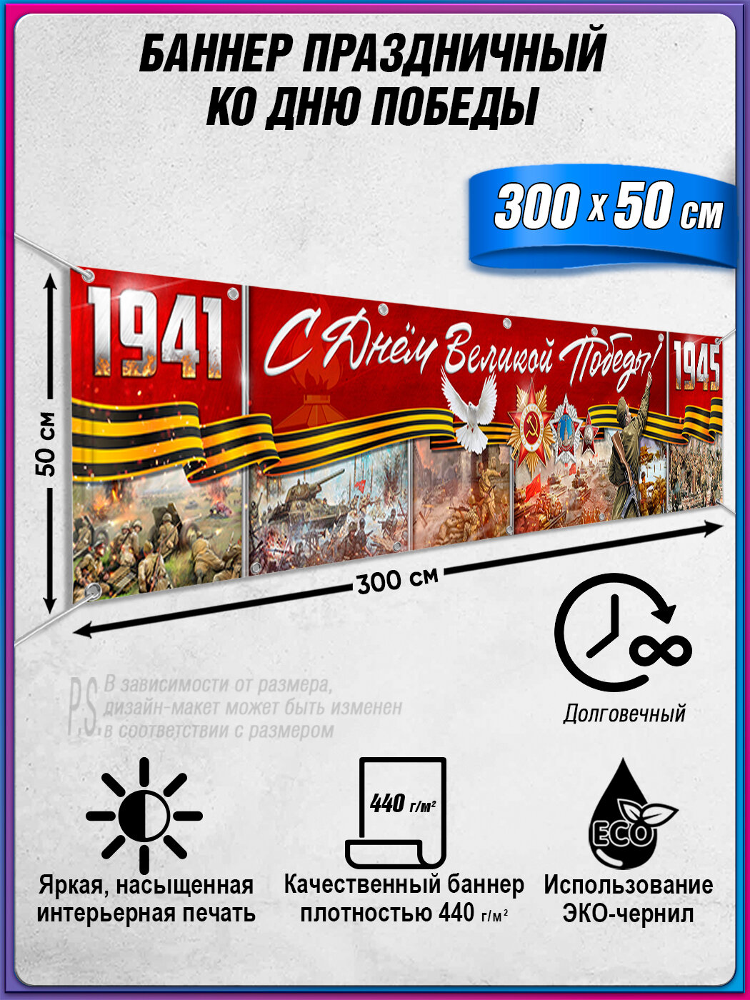 Баннер на 9 мая / Растяжка ко Дню Победы / 3x0.5 м. интересное: