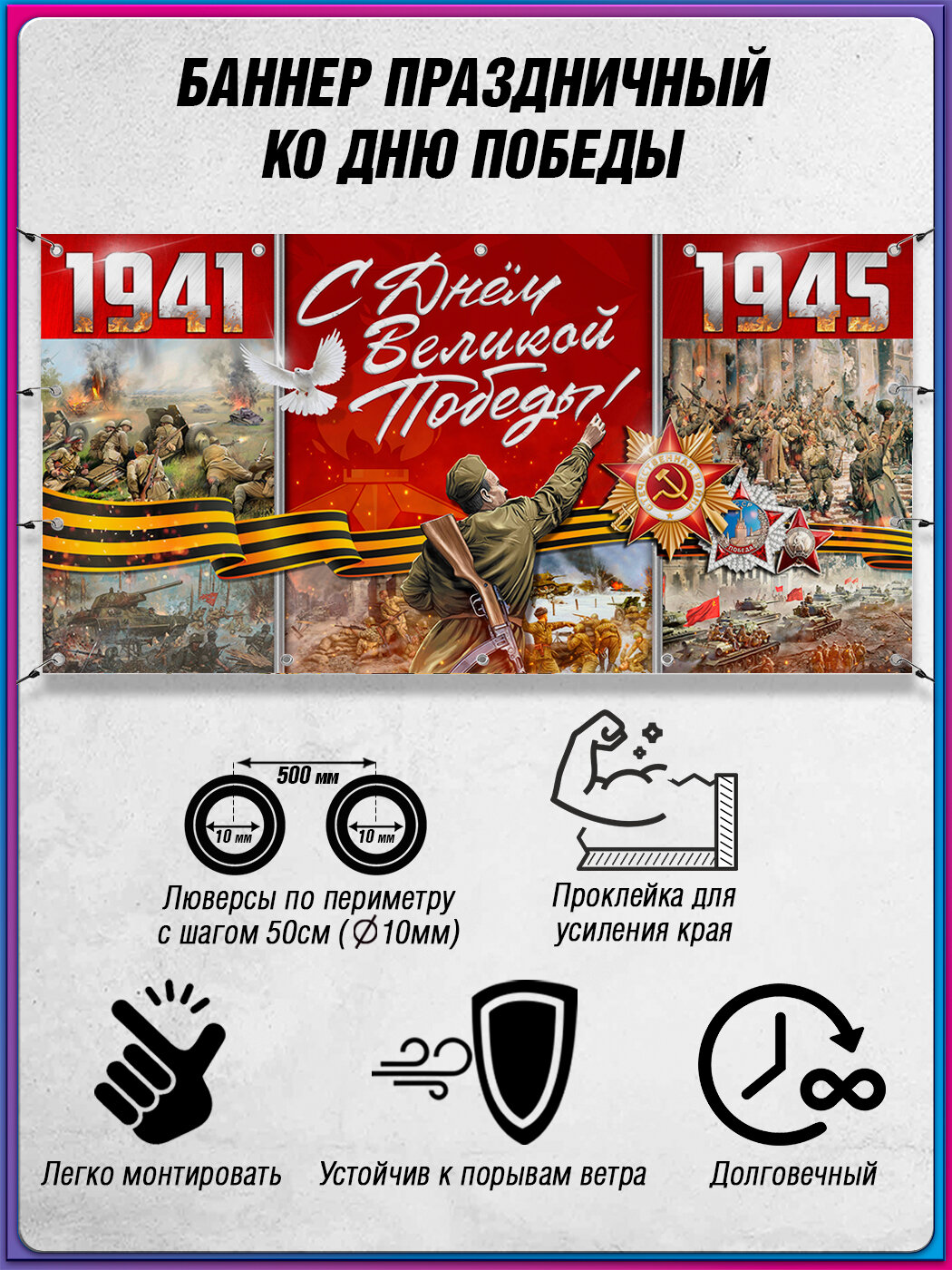 Баннер на 9 мая / Растяжка ко Дню Победы / 3x1 м. интересное:
