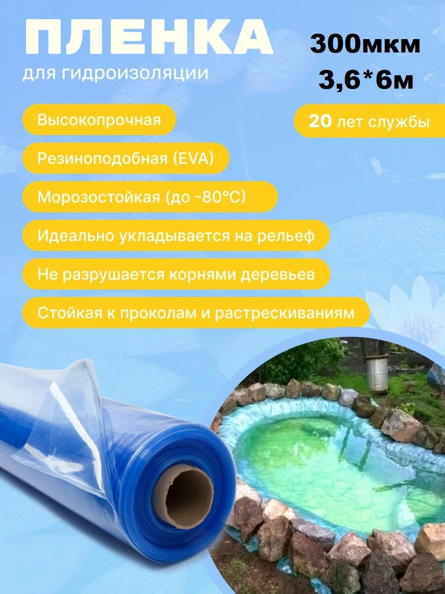 Пленка "Водяной" цвет прозрачно-голубой 300мкм 3,6м*3 м, пленка для водоемов, пленка для бассейна