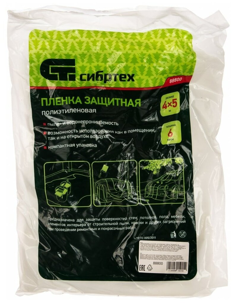 Пленка защитная 4х5 м, 6 мкм, полиэтиленовая, Сибртех интересное: