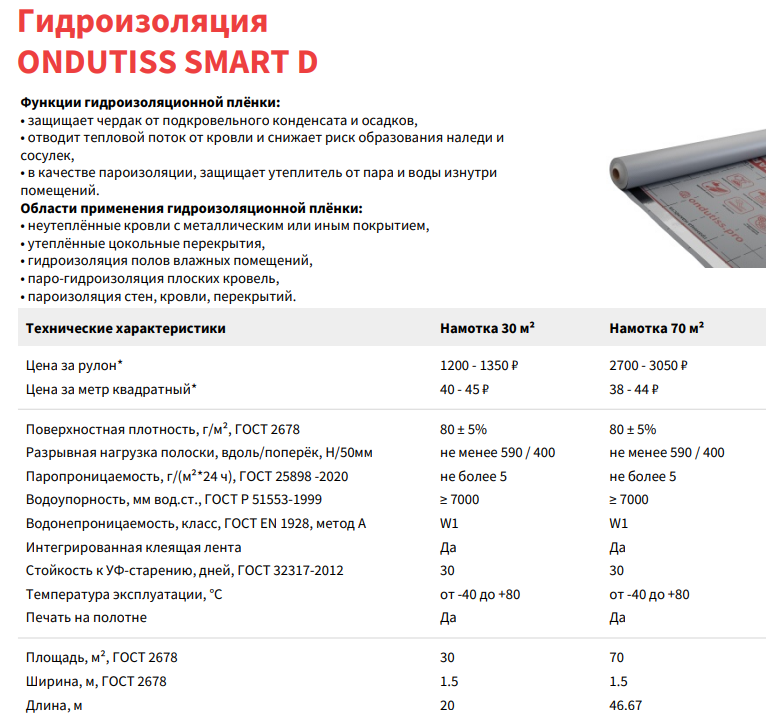 Гидроизоляция Ондутис Smart D, 30 м2 / Гидроизоляционная пленка Ондутис Смарт Д интересное: