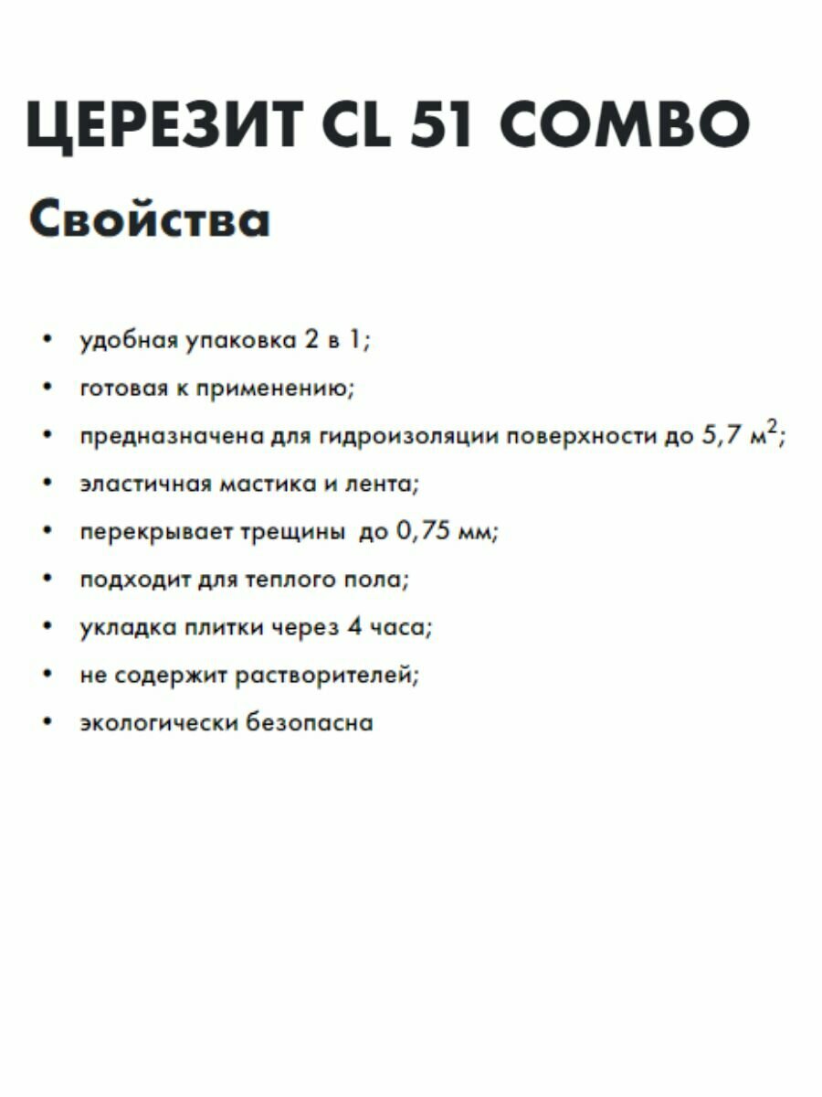 СохранитьНабор для гидроизоляции Церезит Комбо, 7,5 кг интересное: