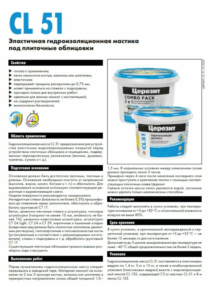 Церезит CL-51 Экспресс мастика гидроизоляционная (15кг) / CERESIT CL-51 Экспресс эластичная гидроизоляция (15кг)