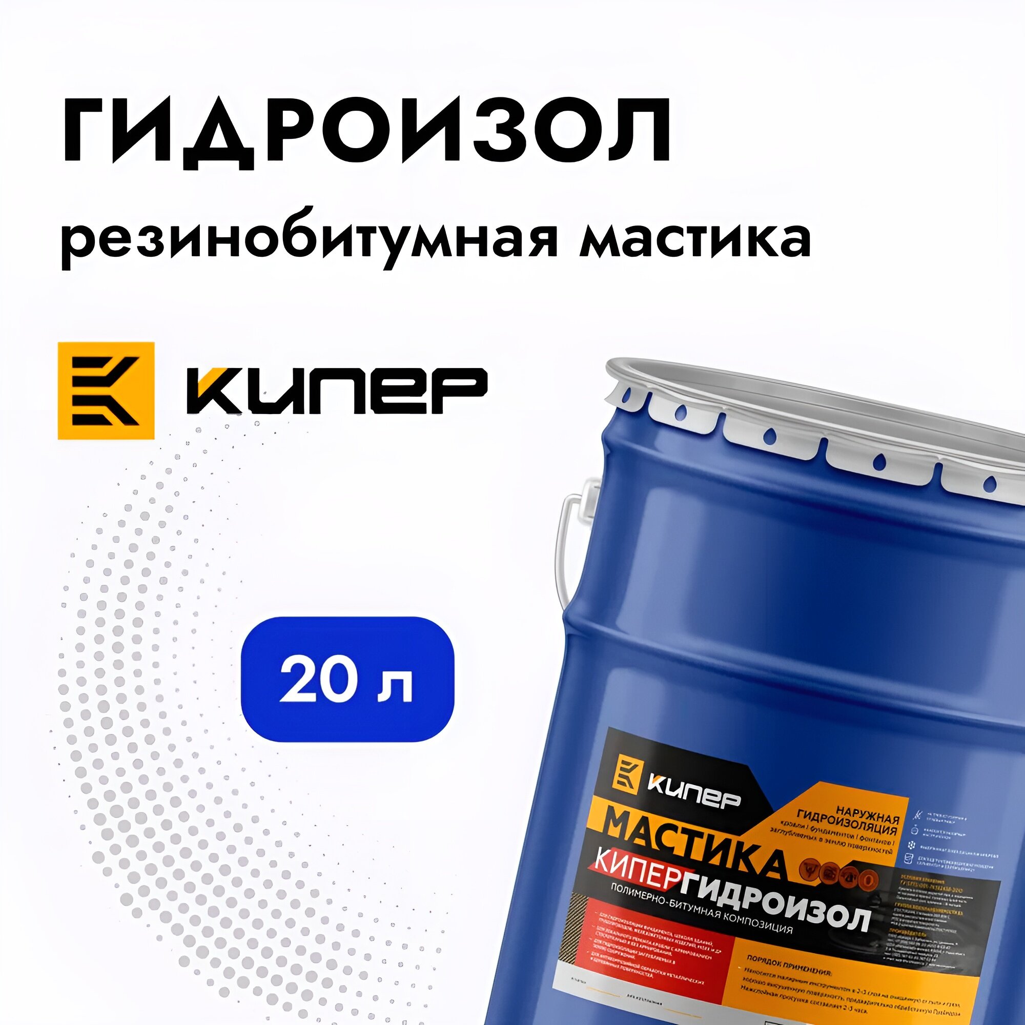 Гидроизол Кипер (20л) резинобитумная мастика гидроизоляция кровли и фундамента: бетон, камень, дерево, металл, шифер, рубероид интересное: