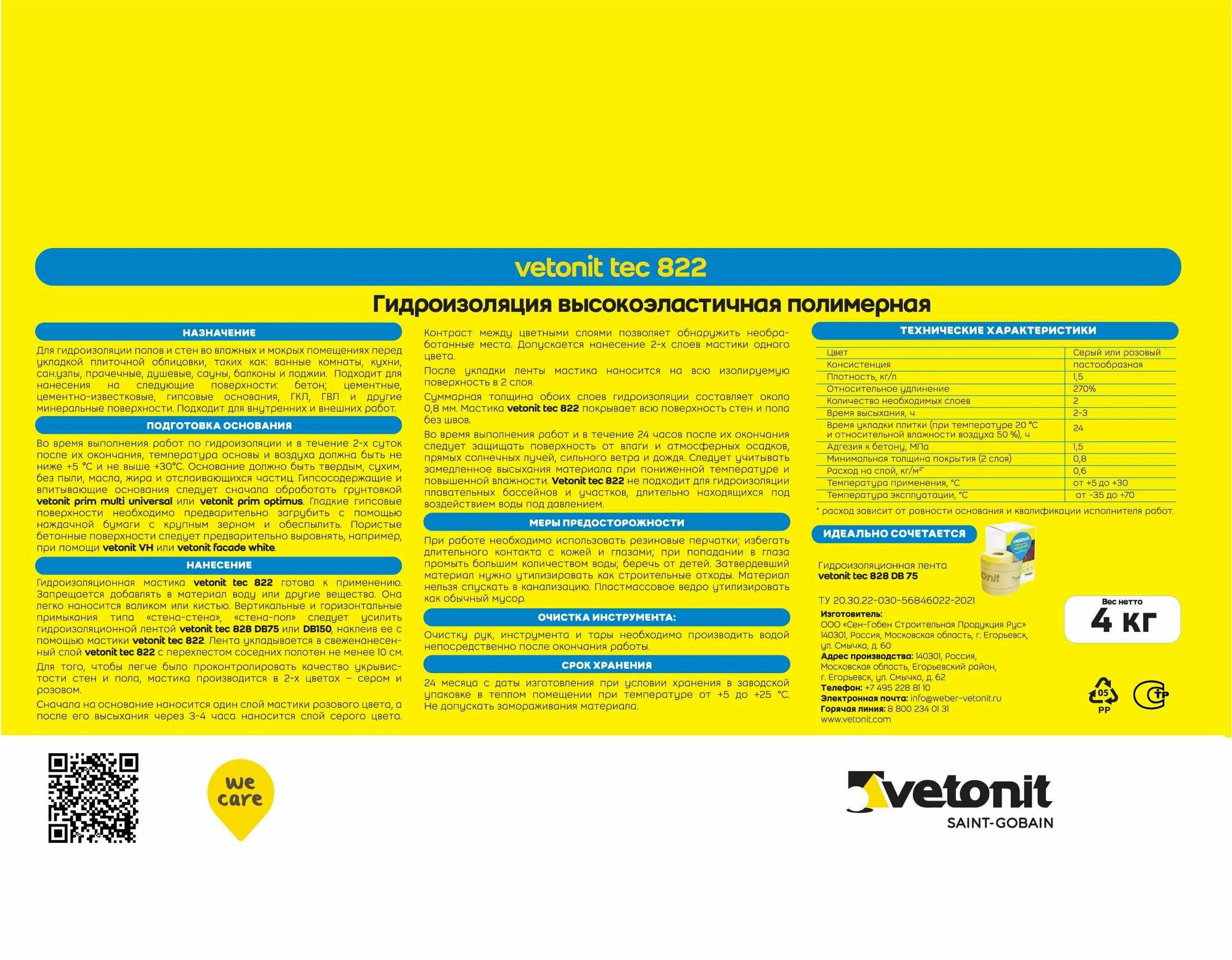 Ниже Вы можете прочитать отзывы на Мастика гидроизоляционная Vetonit Tec 822 4 кг цвет серый, ознакомится с подробными характеристиками, посмотреть интересные обзоры и фотографии на Мастика гидроизоляционная Vetonit Tec 822 4 кг цвет серый.