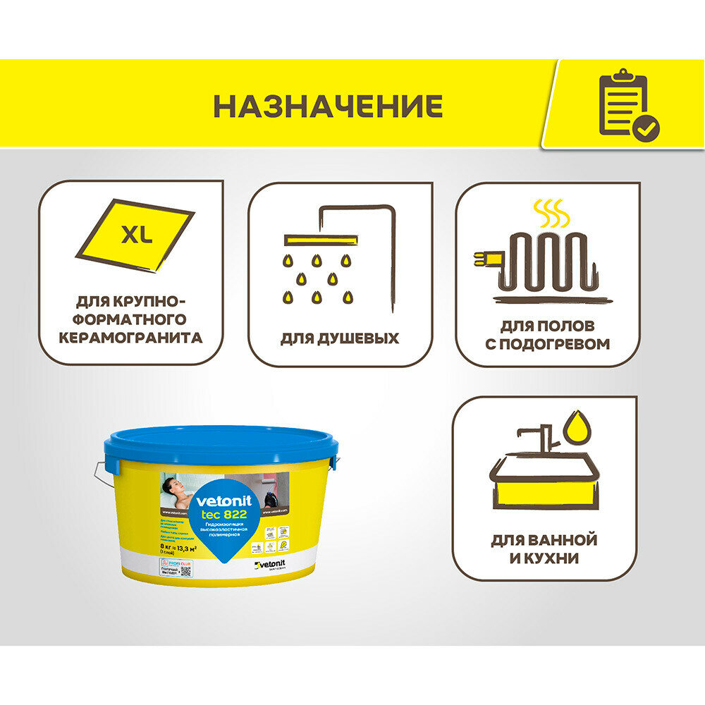 Ветонит Вебер. Тек 822 мастика акриловая гидроизоляционная (8кг) серая / VETONIT Weber.Tec 822 гидроизоляция высокоэластичная полимерная (8кг) серая