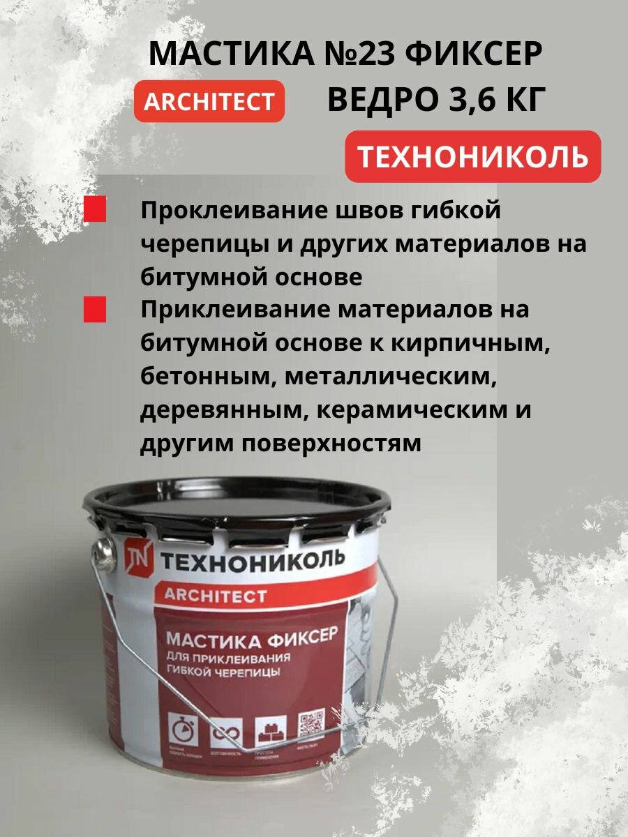 Ниже Вы можете прочитать отзывы на Мастика №23 фиксер для приклеивания гибкой черепицы, ознакомится с подробными характеристиками, посмотреть интересные обзоры и фотографии на Мастика №23 фиксер для приклеивания гибкой черепицы.