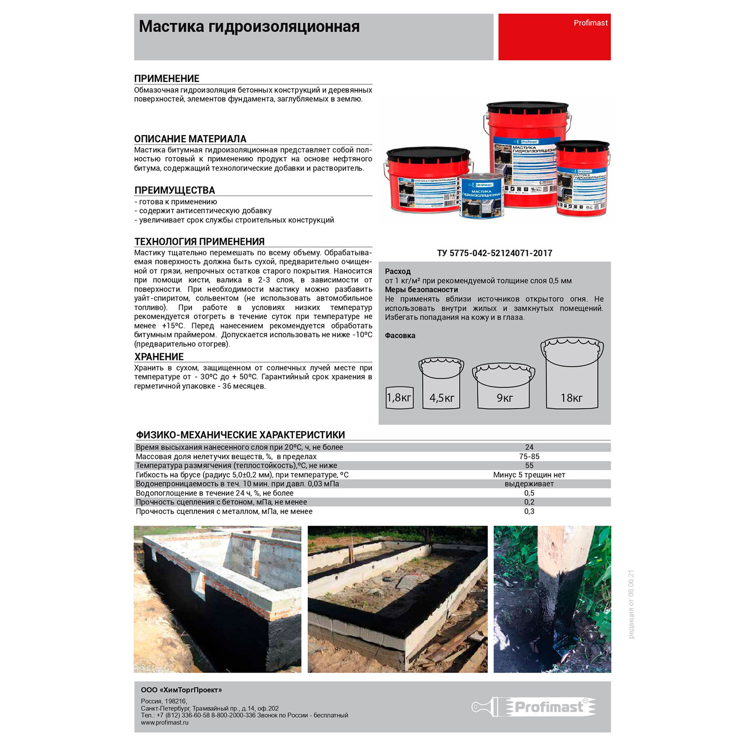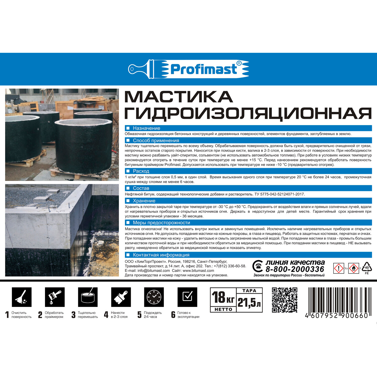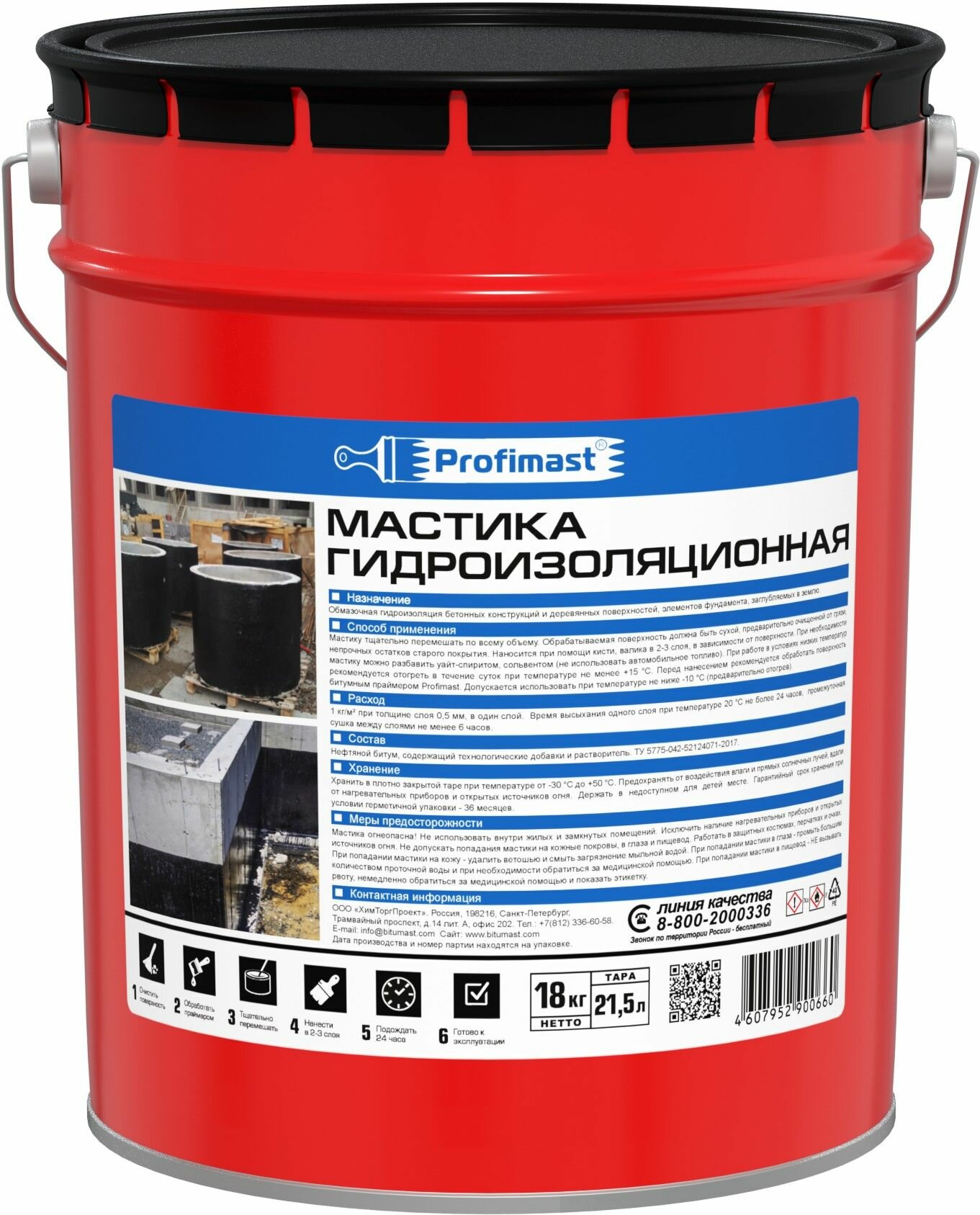 Мастика битумная гидроизоляционная Profimast 21,5л/18кг интересное: