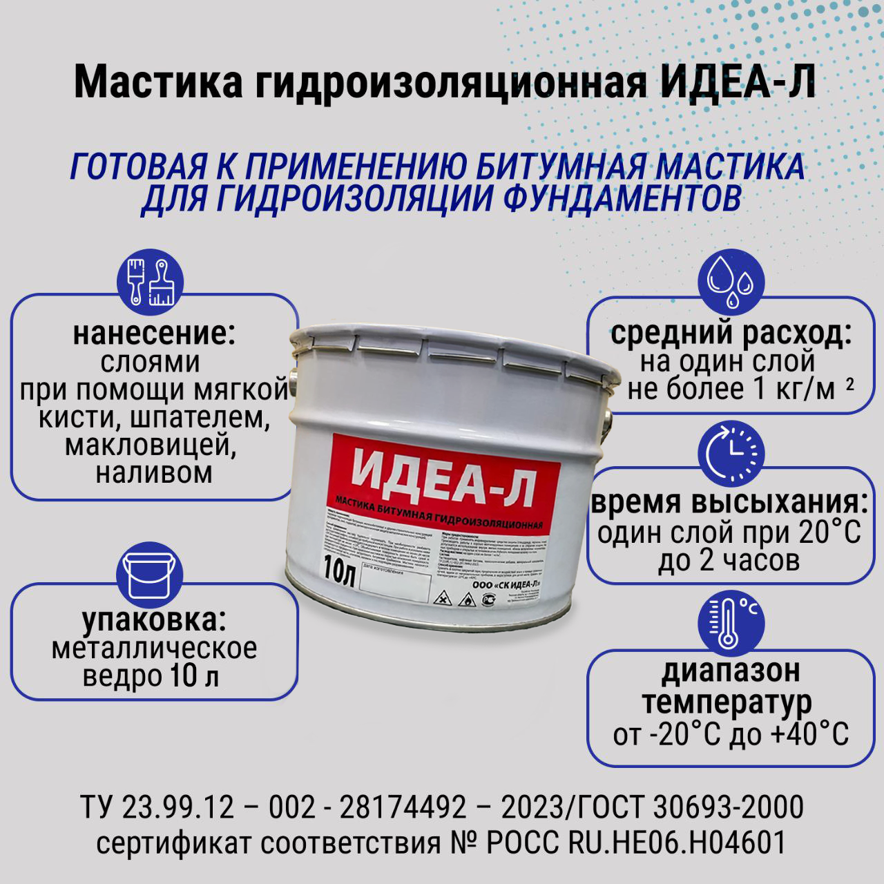 Мастика битумная идеа-л для фундамента, кровли ведро 10л/ 9,3кг интересное: