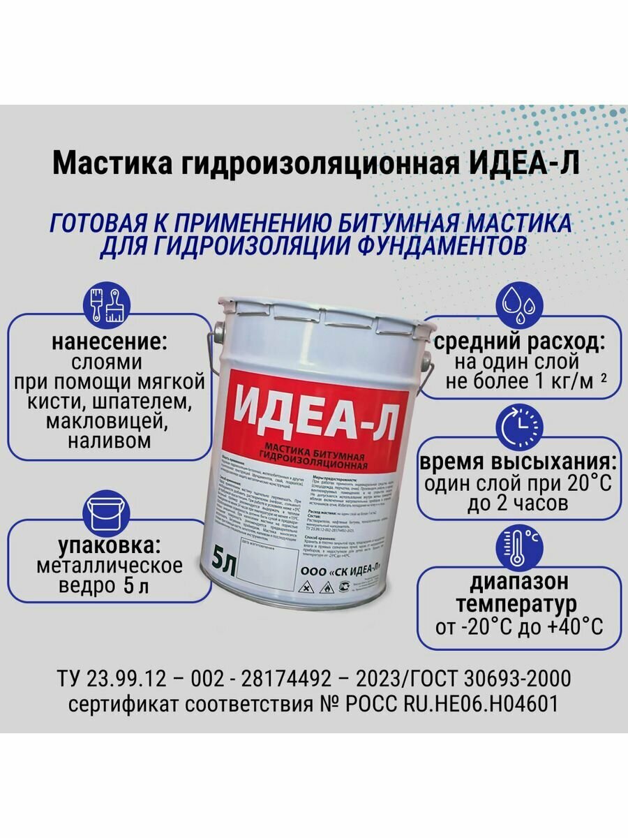 Мастика битумная идеа-л для кровли и фундамента, 5 л/4,8кг интересное: