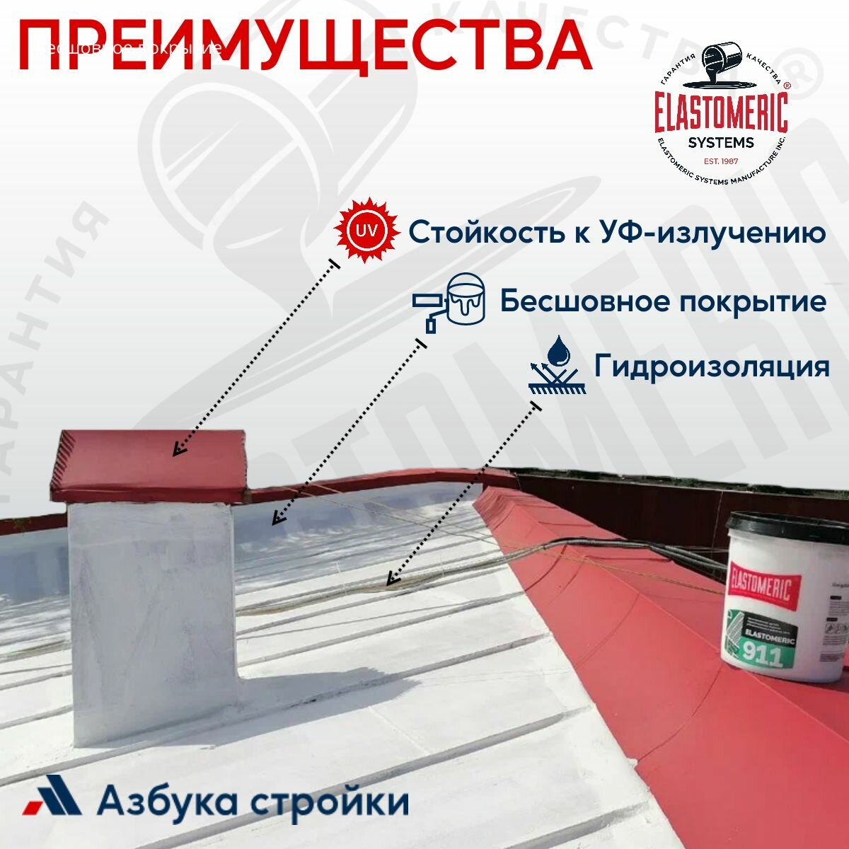 Гидроизоляционная мастика Elastomeric 911 - гидроизоляция для кровли и окраски металлических крыш. Жидкая резина для кровли - водонепроницаемый герметик для ремонта крыши