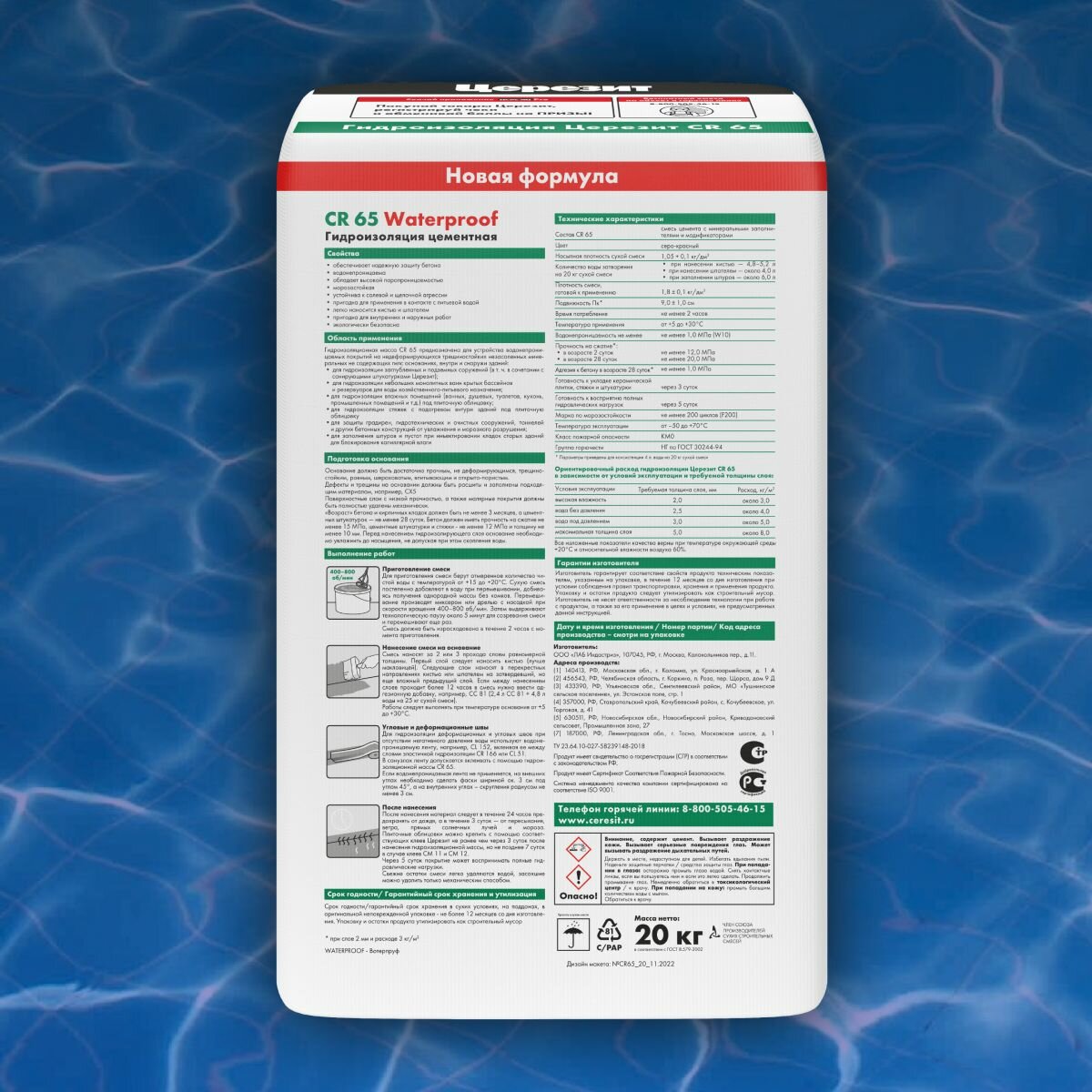 Церезит CR-65 цементная гидроизоляция (20кг) / CERESIT CR 65 Waterproof цементная гидроизоляционная смесь (20кг)