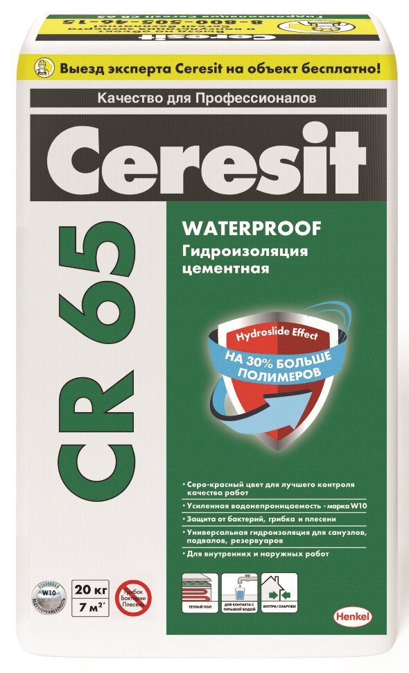 Ниже Вы можете прочитать отзывы на Смесь СR65 Waterproof цем. гидроизоляц. материал, церезит - 20 кг., ознакомится с подробными характеристиками, посмотреть интересные обзоры и фотографии на Смесь СR65 Waterproof цем. гидроизоляц. материал, церезит - 20 кг..