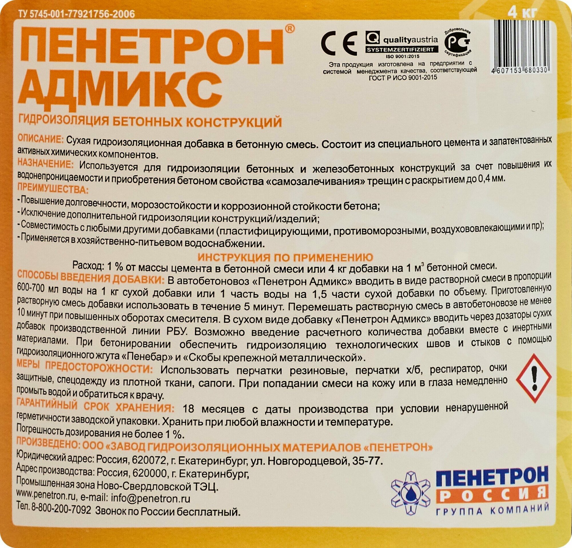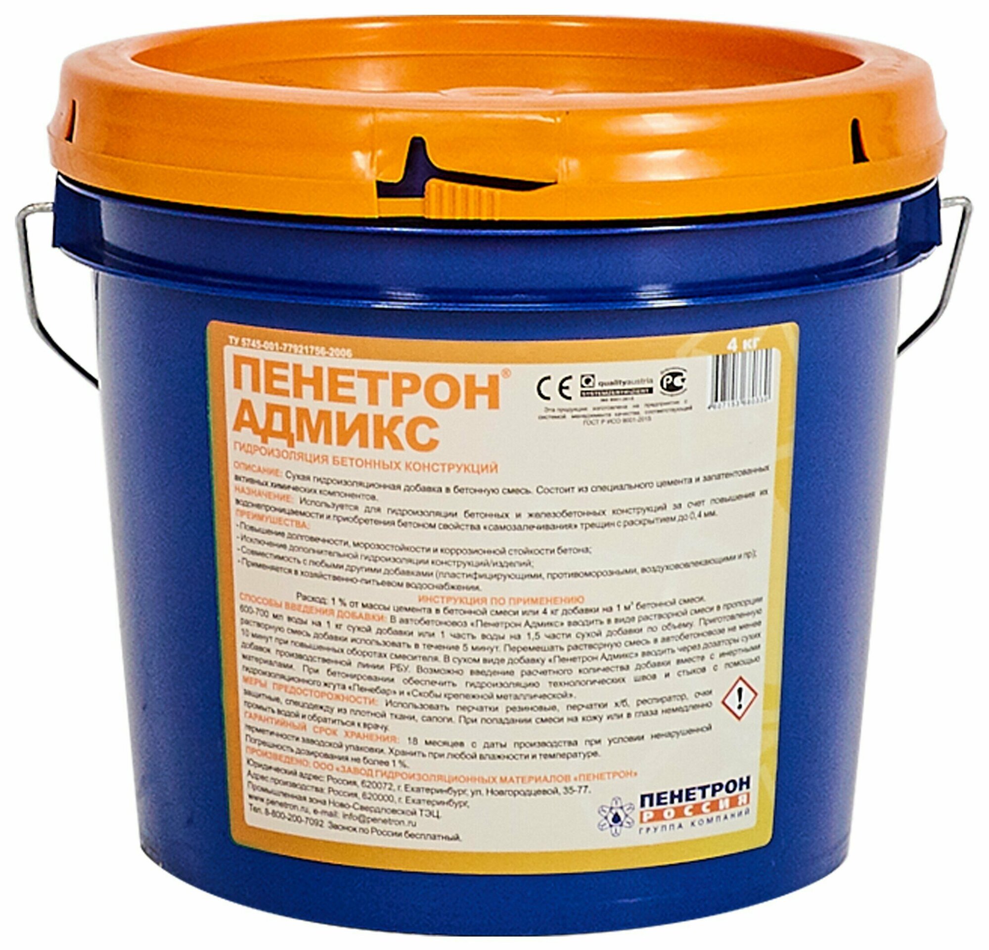 | Дополнительная информация | Гидроизоляция Пенетрон Адмикс 4 кг |