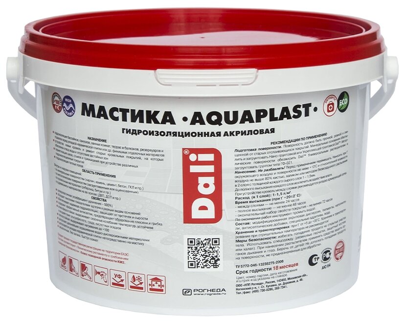 Мастика гидроизоляционная Dali Aquaplast, универсальная, акриловая, 5 л