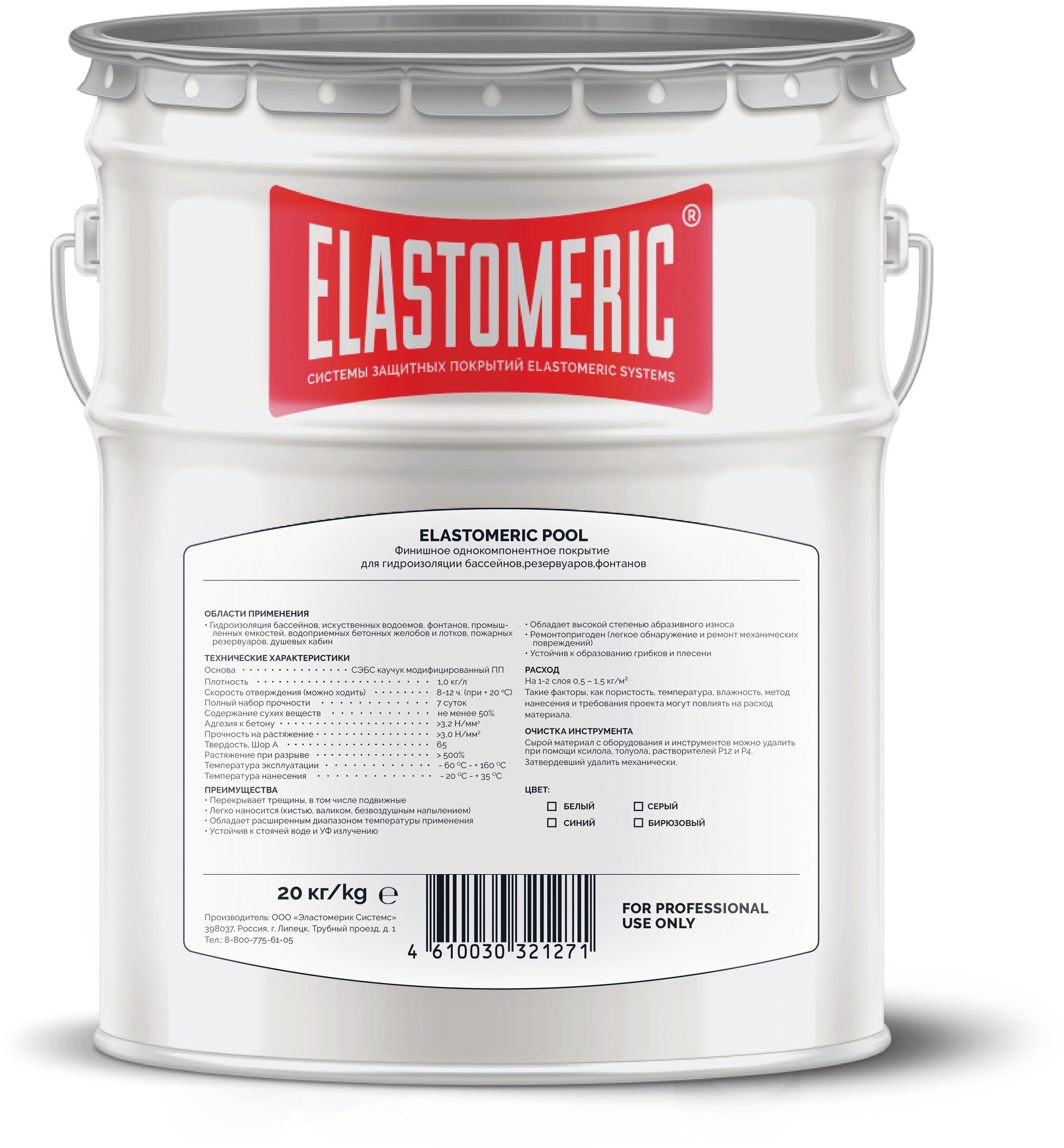Покрытие для бассейнов, фонтанов, резервуаров Elastomeric POOL (белый) 20кг.