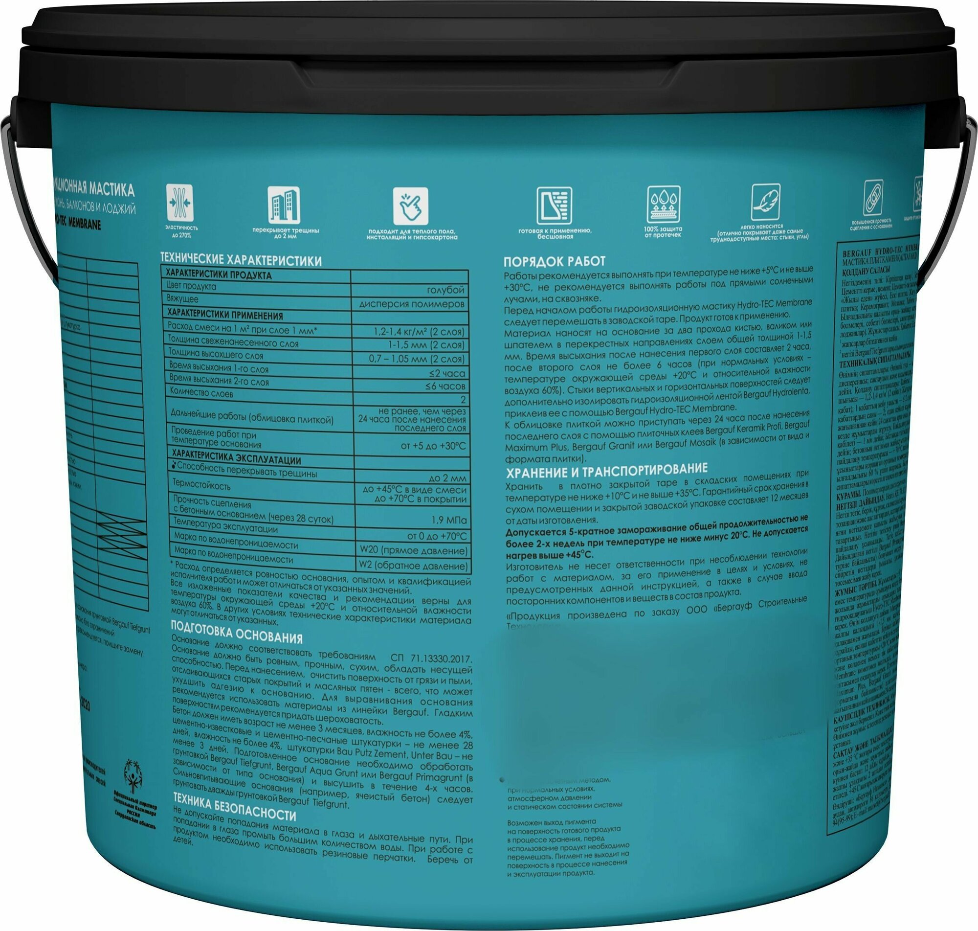Гидроизоляционная мастика Bergauf 13 кг, hydro-tec membrane 63415