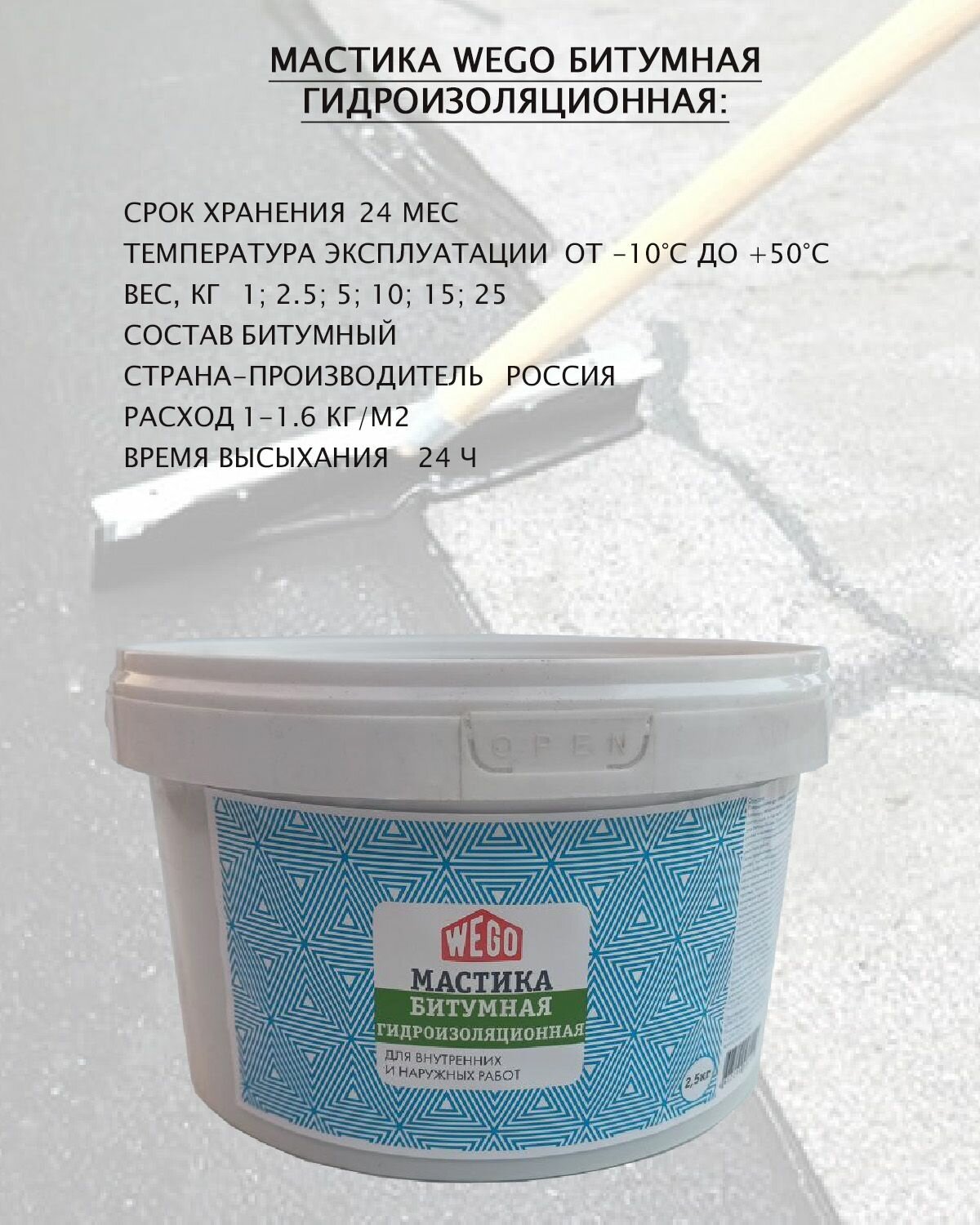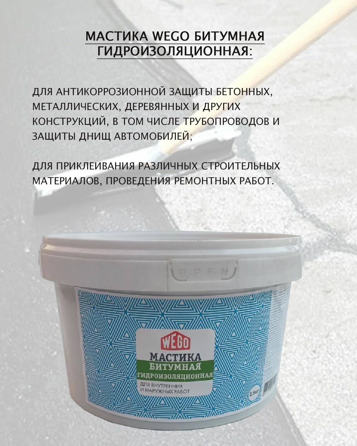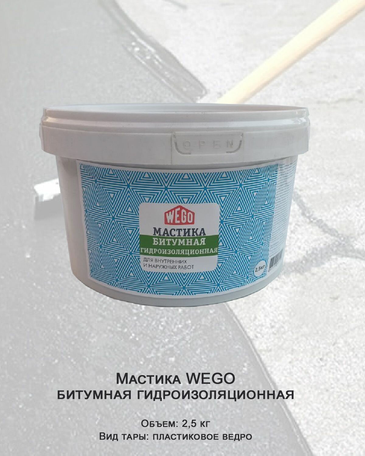 Мастика WEGO битумная гидроизоляционная 2,5кг, ведро пластик интересное: