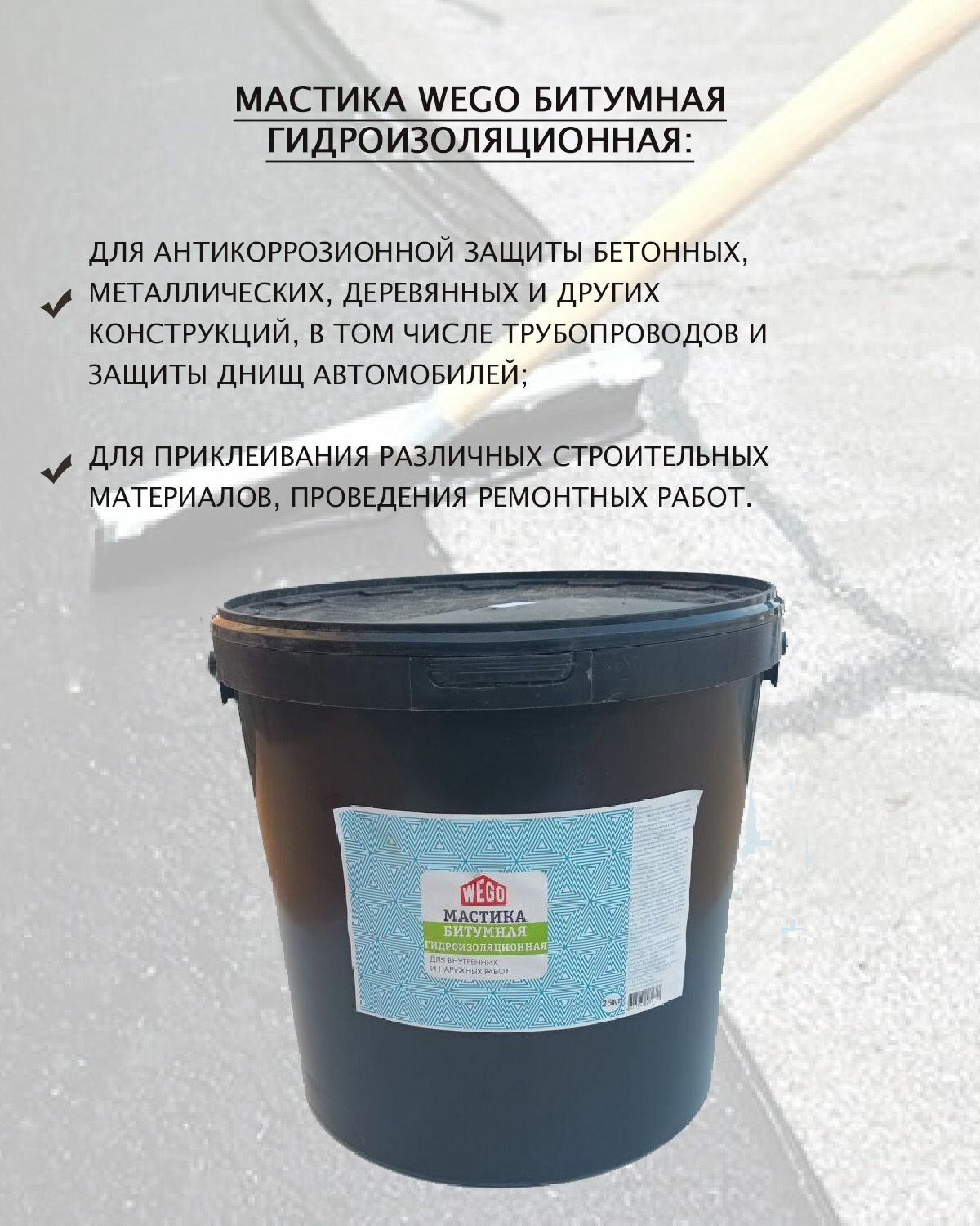 Мастика WEGO битумная гидроизоляционная 25кг, ведро пластик интересное: