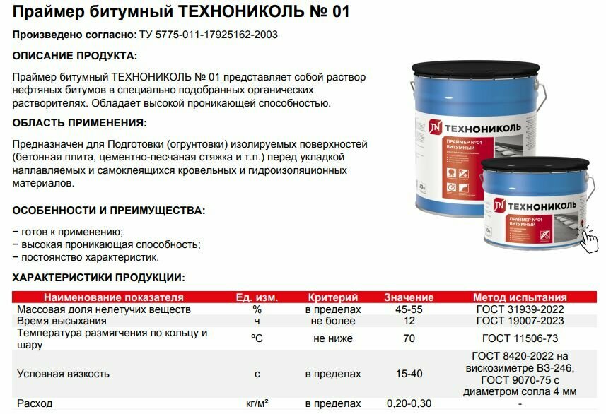 Праймер битумный Технониколь № 01 (10 л) интересное: