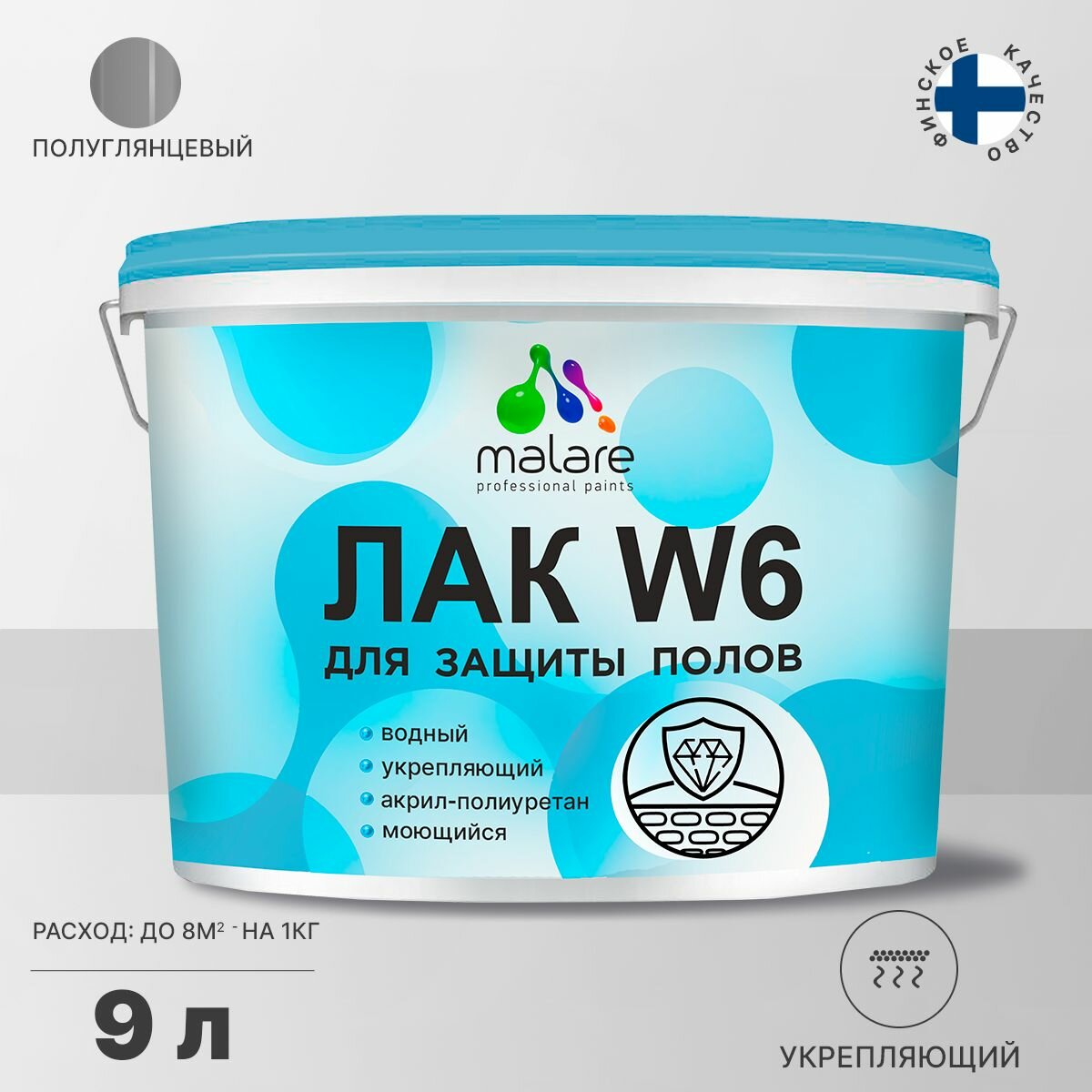 Лак для защиты пола Malare для паркета и ламината, для мебели, для дерева и минеральных поверхностей, водный без запаха быстросохнущий, прозрачный полуглянцевый, 9 кг.