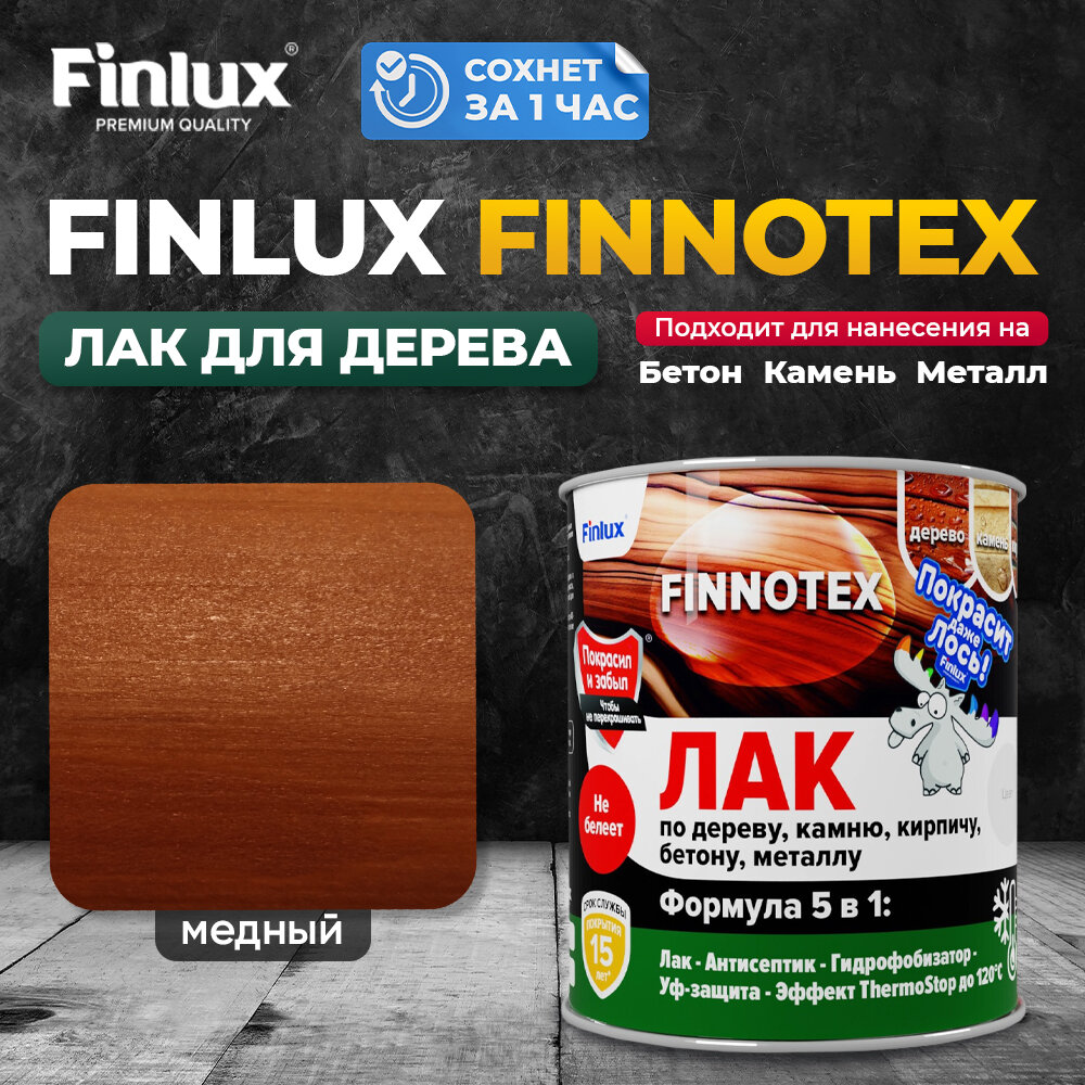 Купить Finlux F-973 "FINNOTEX" акриловый лак для дерева декоративный полуглянцевый, медь