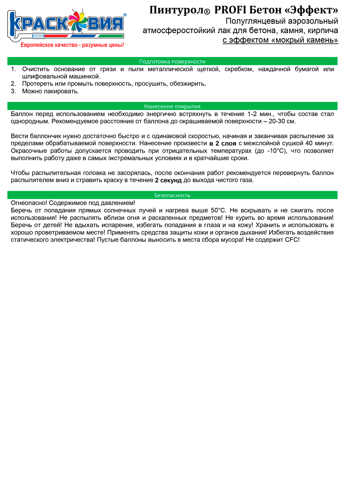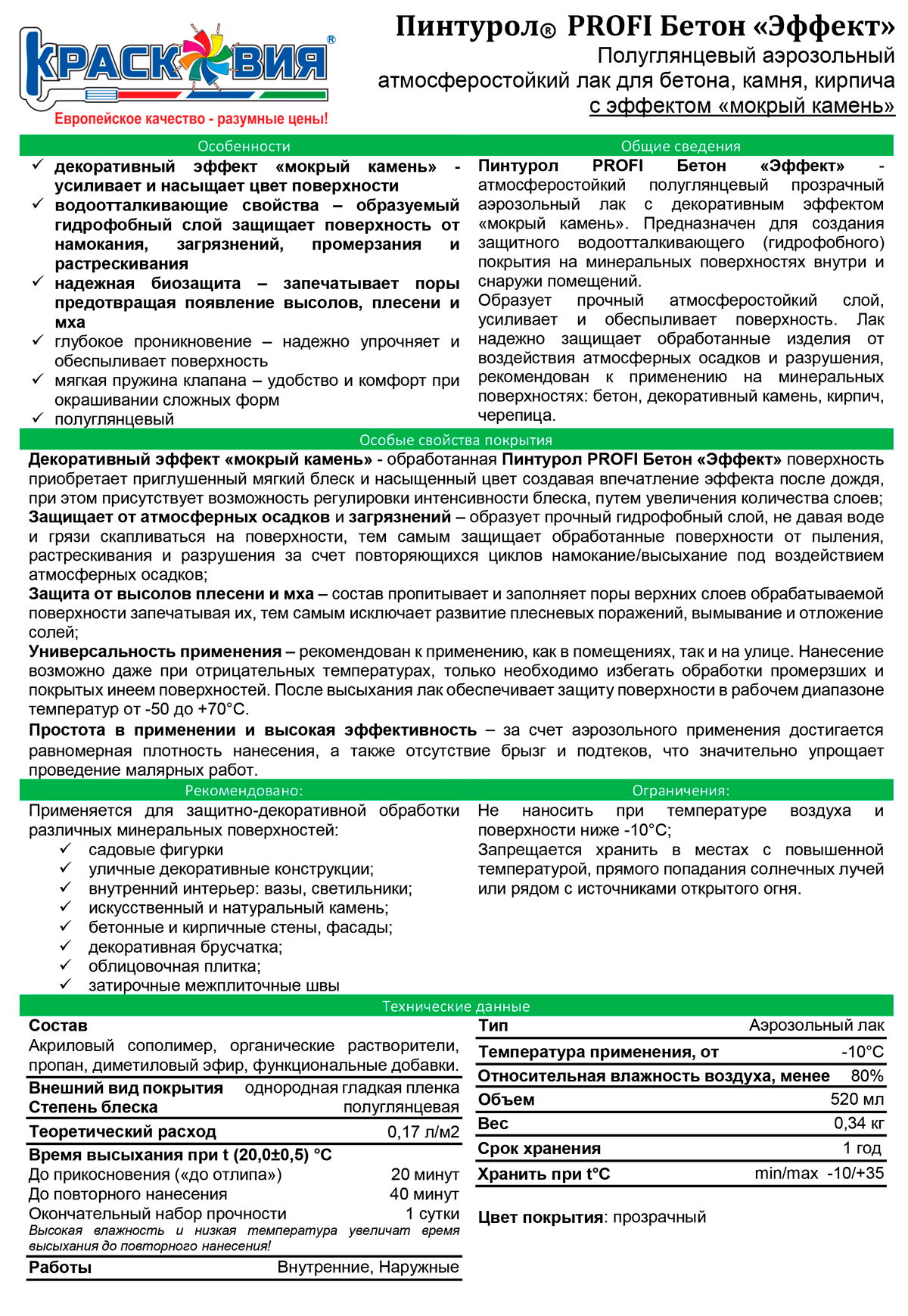 Лак для камня, бетона и кирпича с эффектом мокрого камня Пинтурол Profi Бетон Эффект интересное:
