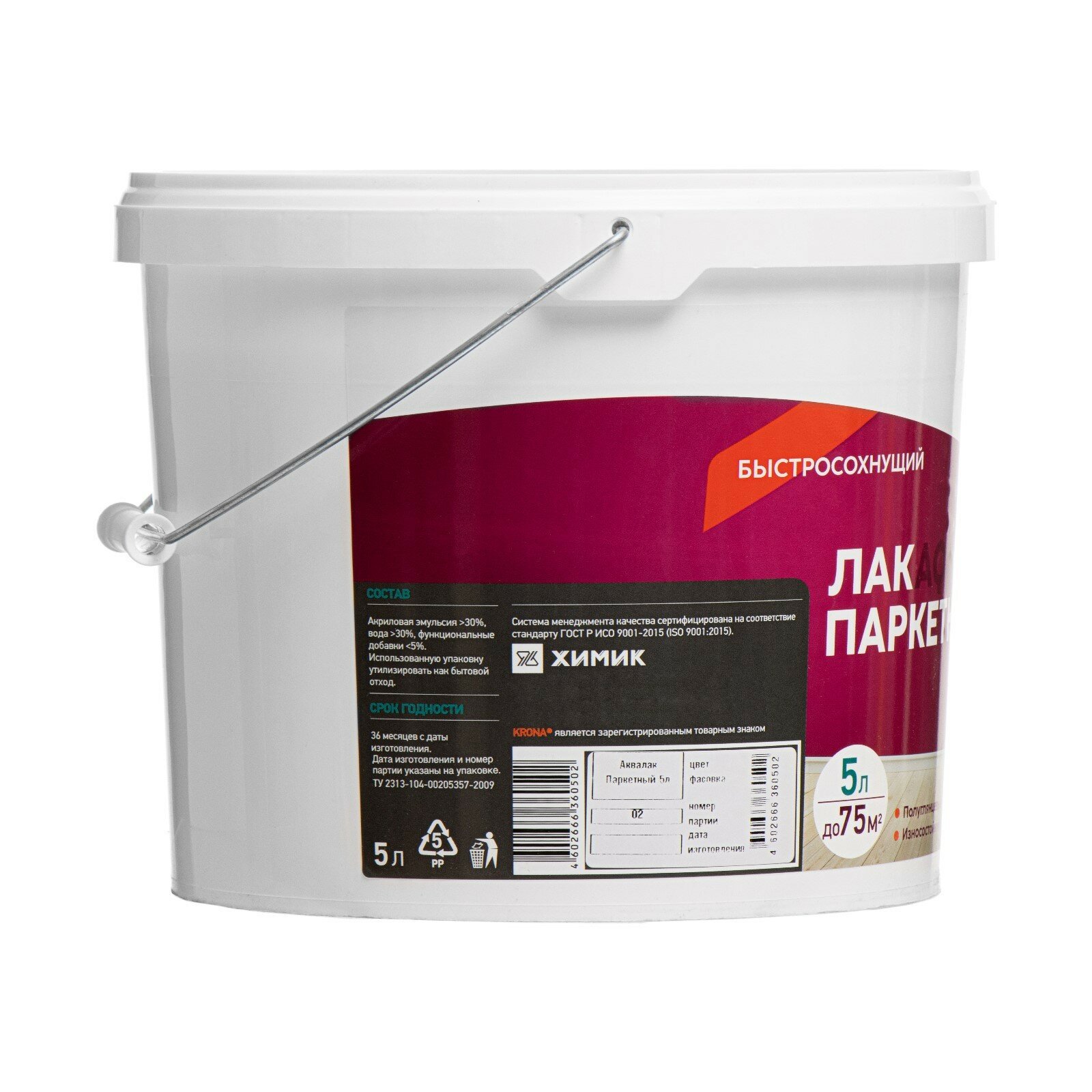Лак акриловый для деревянных полов и паркета Аквалак "KRONA" бесцветный 5 л интересное: