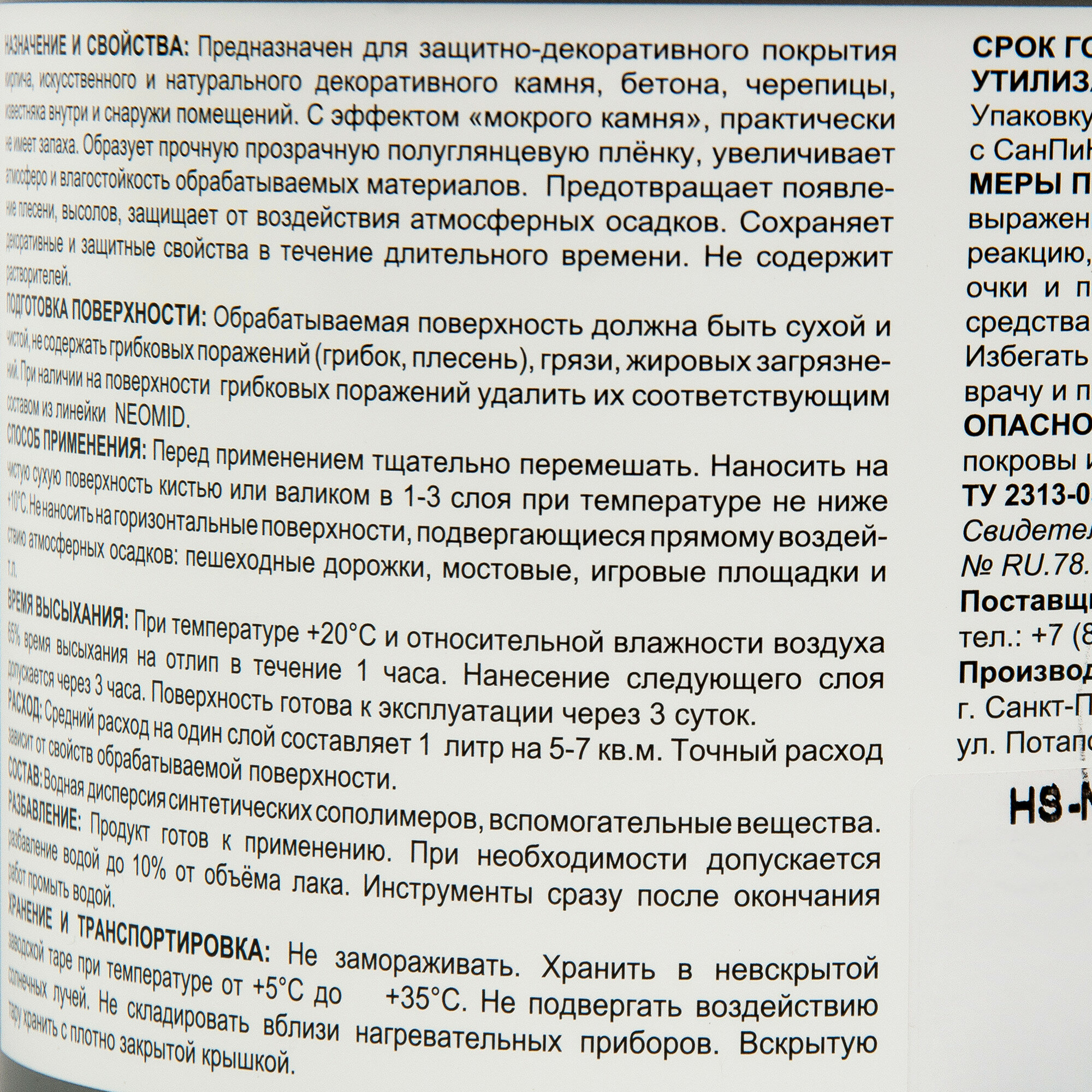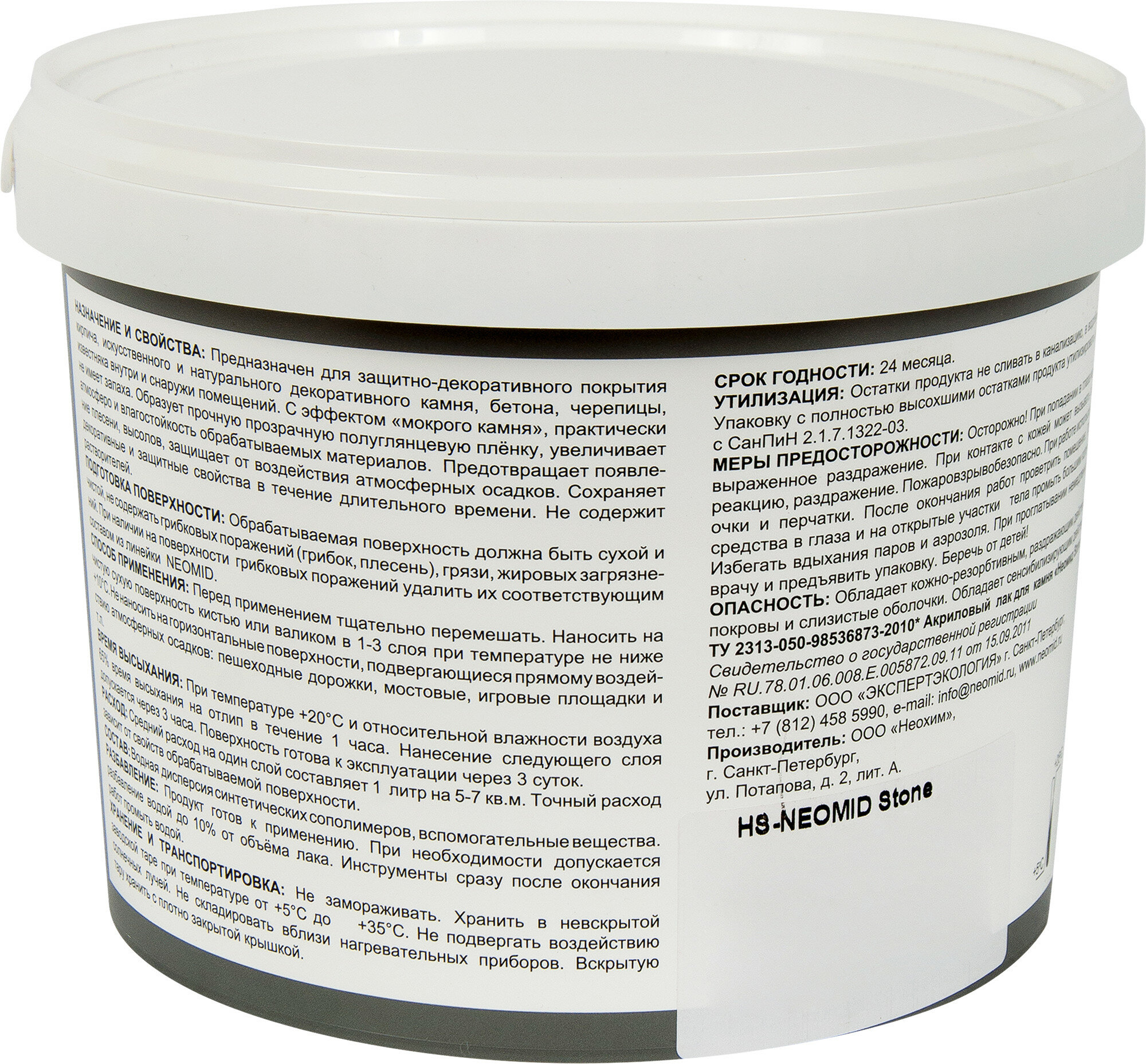 Неомид Stone (1 л) - защитный лак по камню, водорастворимый / С эффектом "мокрый камень"