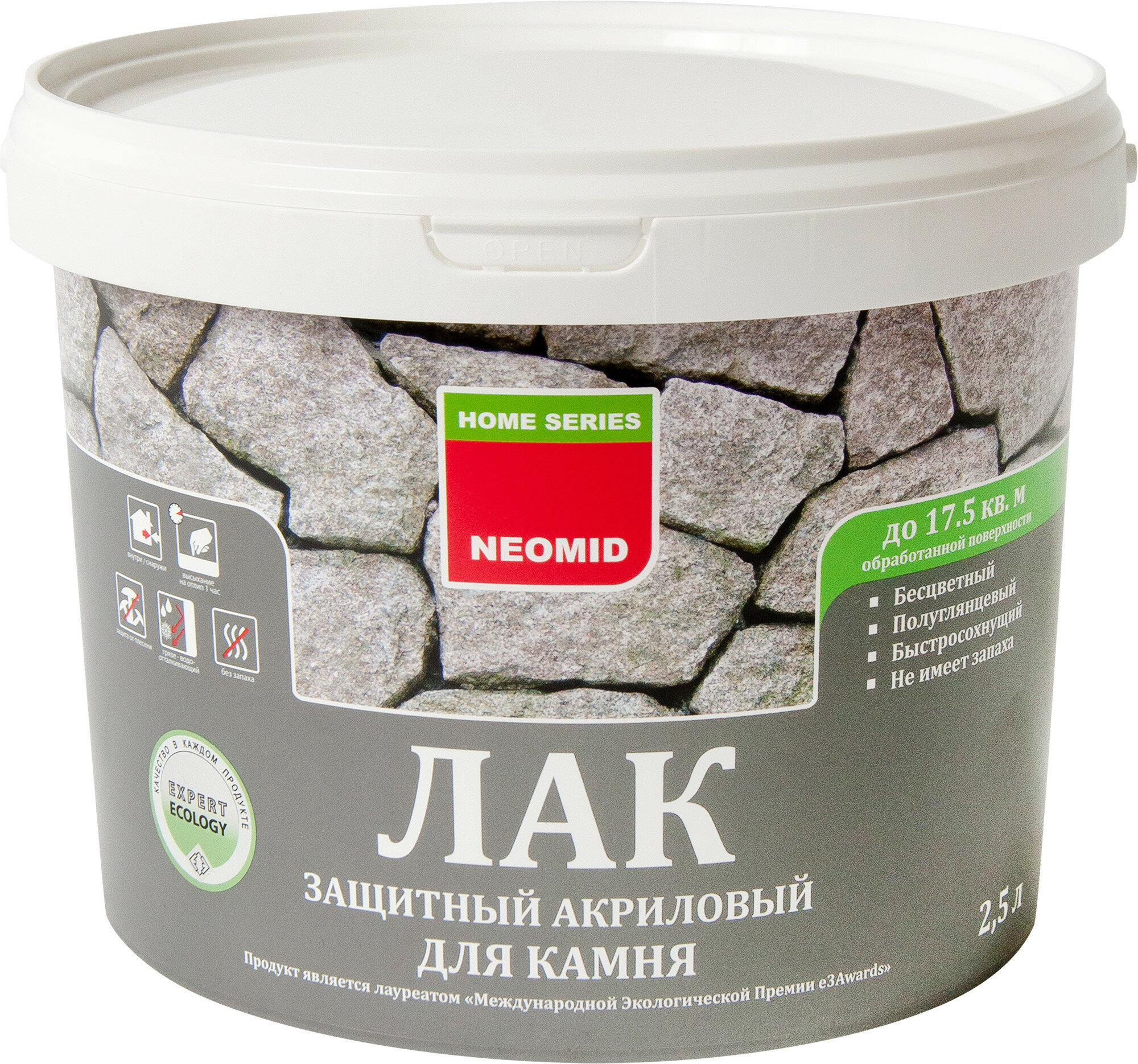 Лак для камня и кирпича Neomid, акриловый, полуглянцевый, 2,5 л