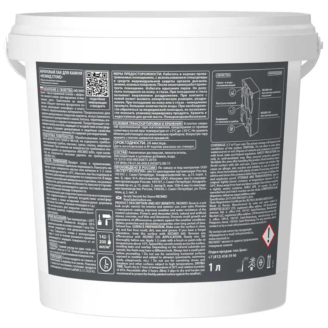Неомид Stone (1 л) - защитный лак по камню, водорастворимый / С эффектом "мокрый камень"