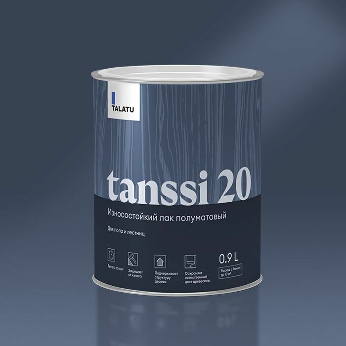 Лак для пола полуматовый TALATU Tanssi 20, 0.9 л
