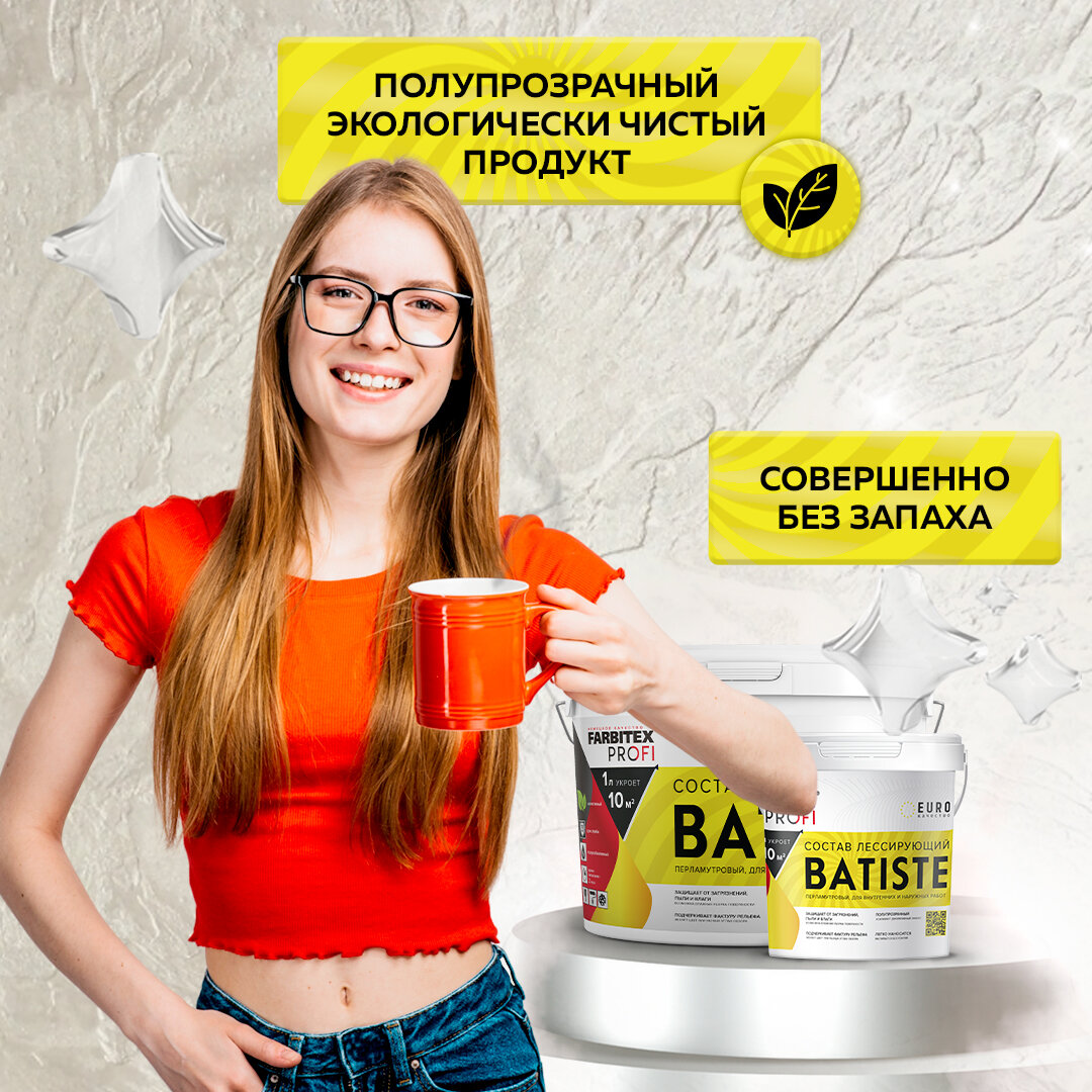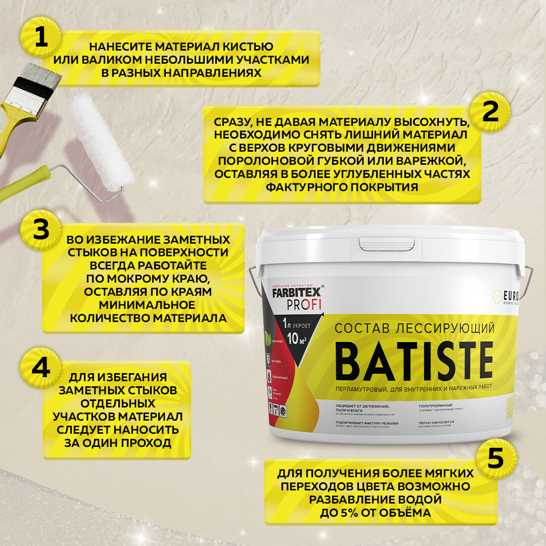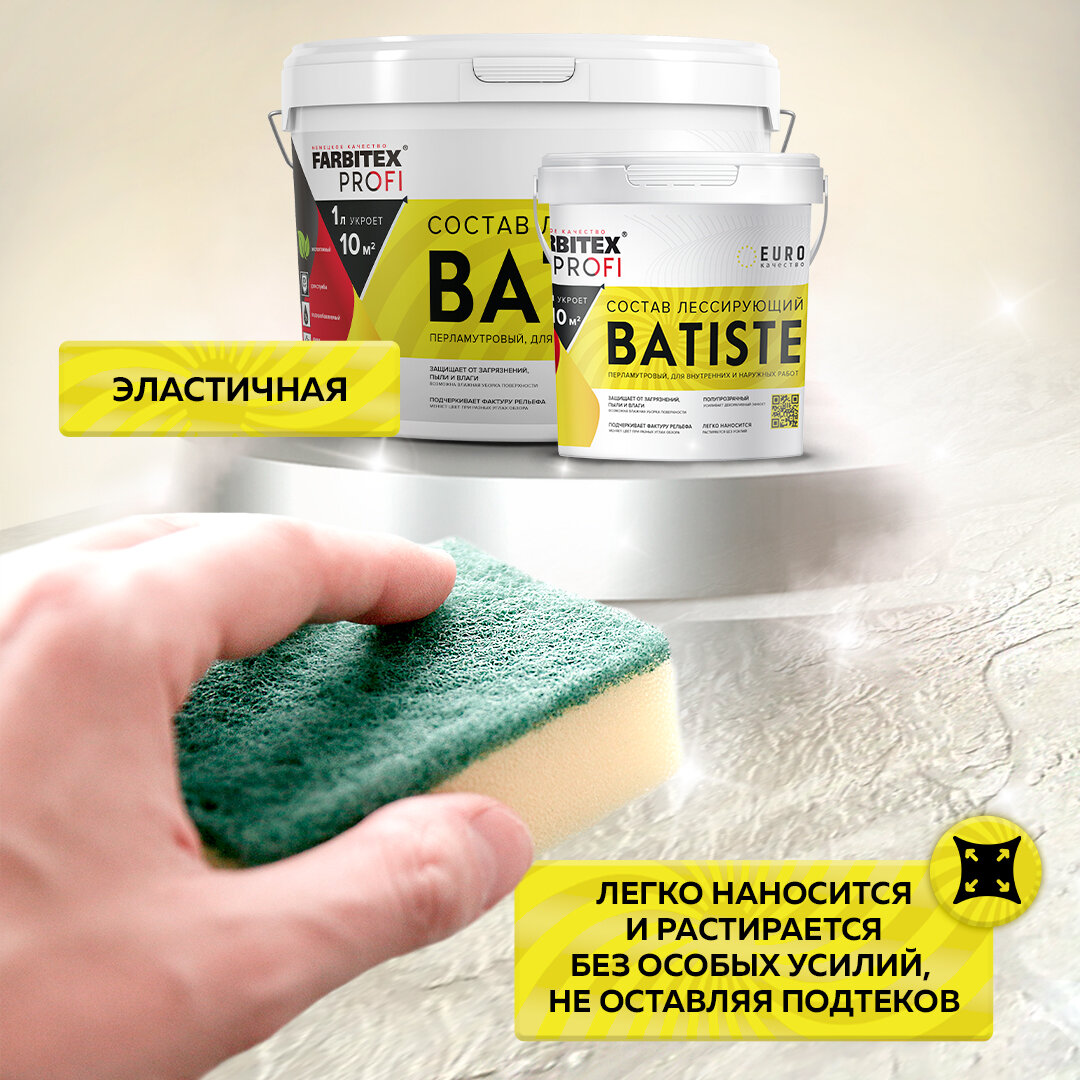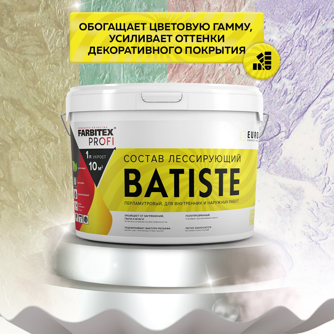 Состав лессирующий полупрозрачный "BATISTE" серебро FARBITEX PROFI 2,5 л интересное: