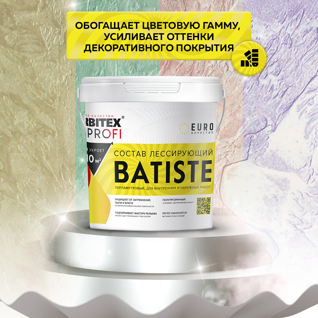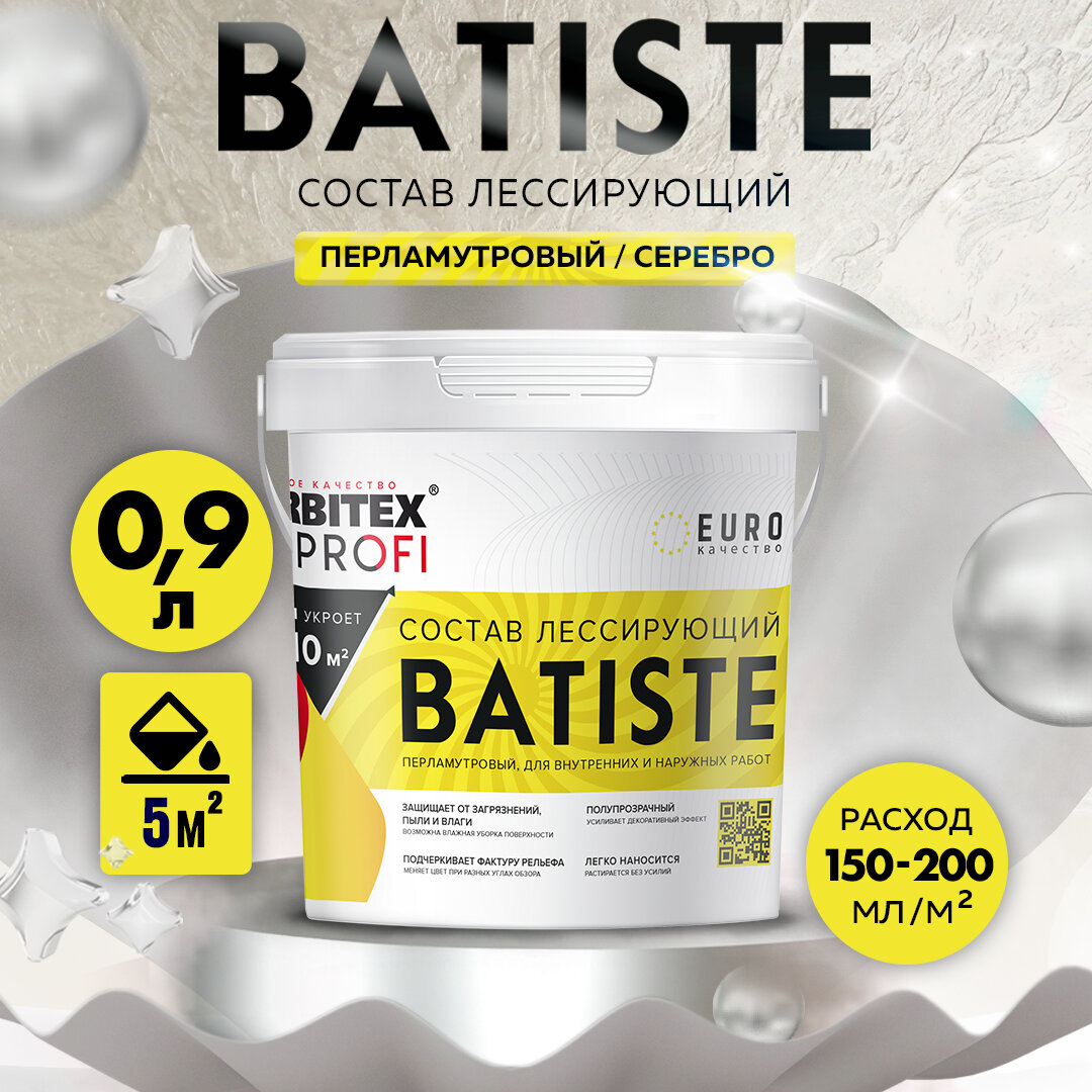 Состав лессирующий полупрозрачный "BATISTE" серебро FARBITEX PROFI 0,9 л интересное: