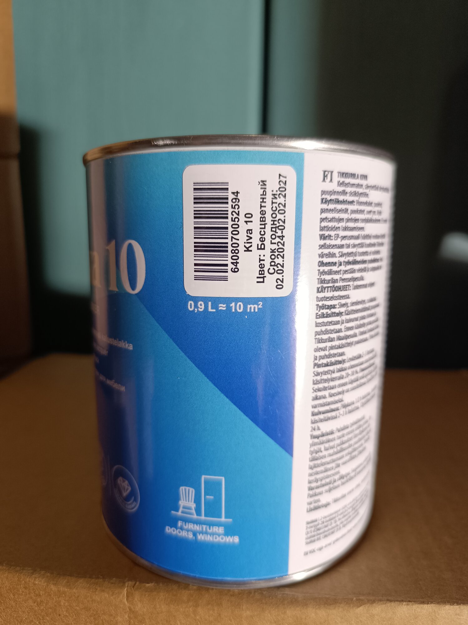 Лак акриловый для мебели для дерева, стен и потолков Tikkurila Kiva 10 (Тиккурила Кива), матовый, прозрачный, Финляндия, 0.9л интересное: