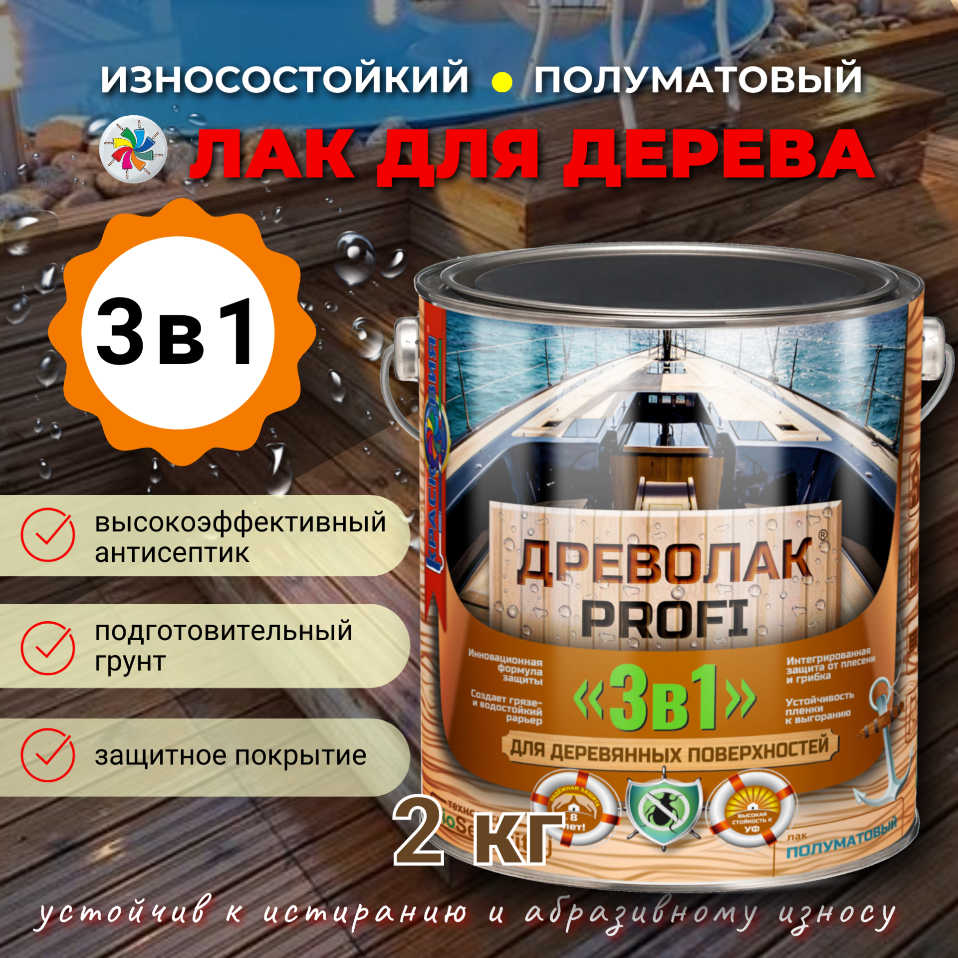Лак для дерева "Древолак Profi" полуматовый, 2 кг. интересное: