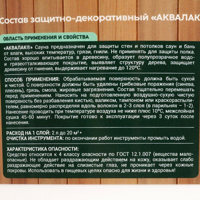 Аквалак сауна "KRONA" 2 л интересное: