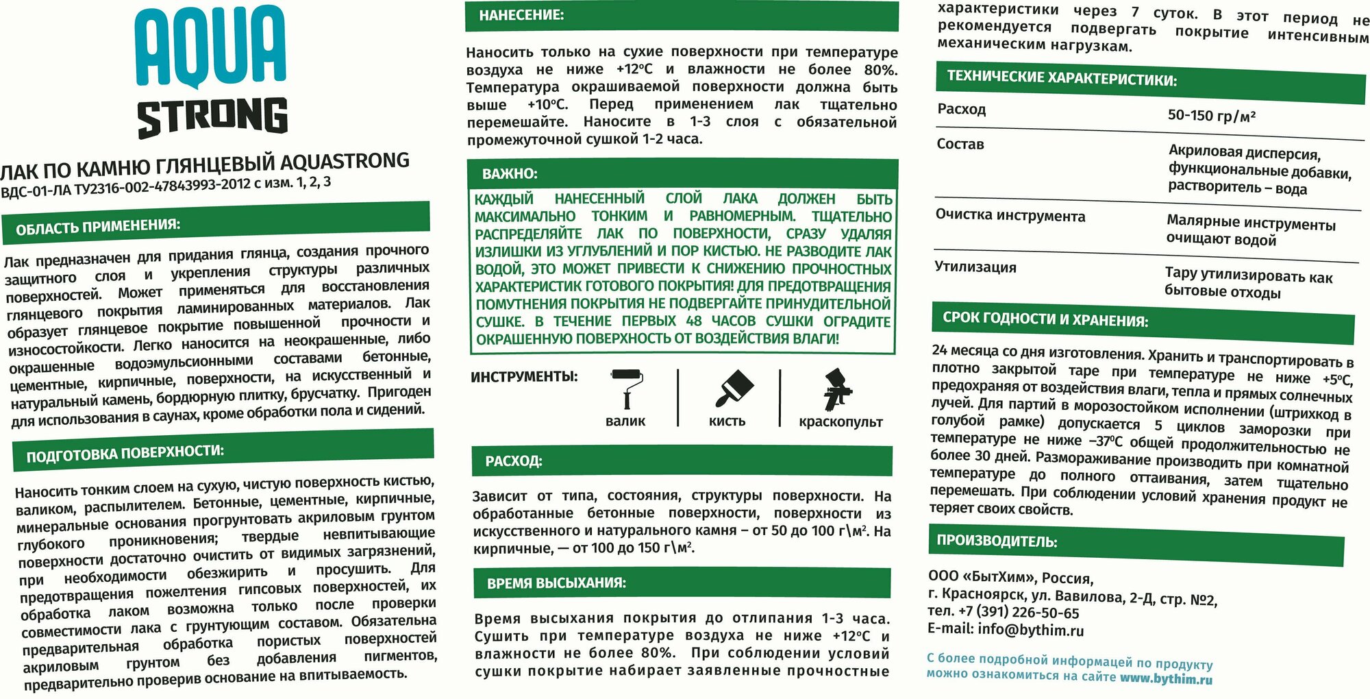| Дополнительная информация | Лак по камню Aquastrong, высокопрочный, 2.5 кг |
