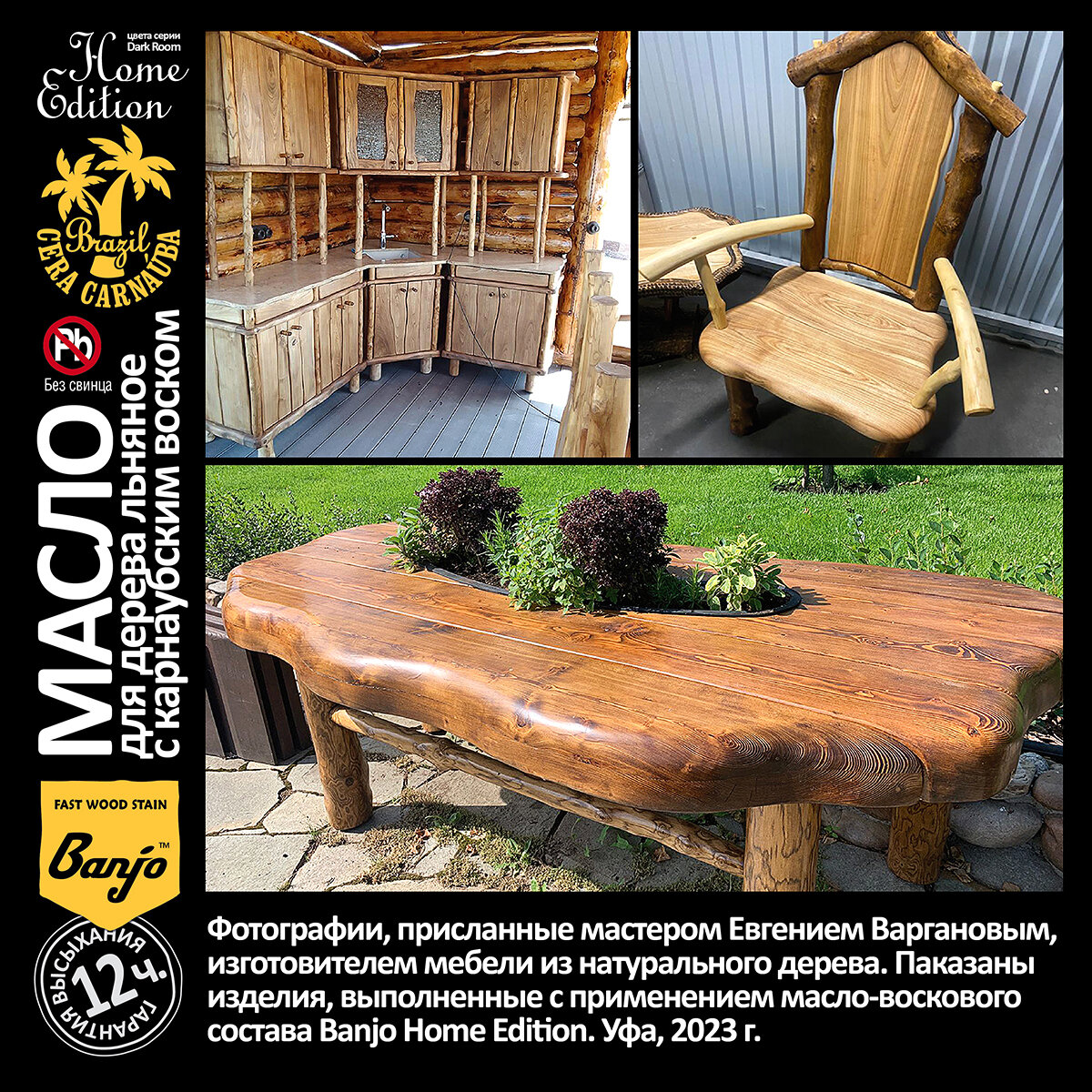 Масло для дерева и мебели льняное с карнаубским воском Banjo Home Edition груша золотая (масло-воск)