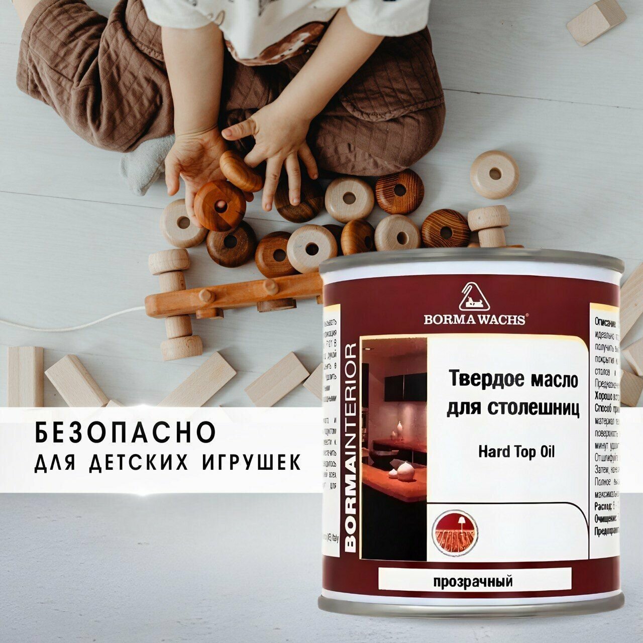 Масло для дерева BORMA WACHS Твердое масло для столешниц Hard Top Oil, Бесцветный, 125мл