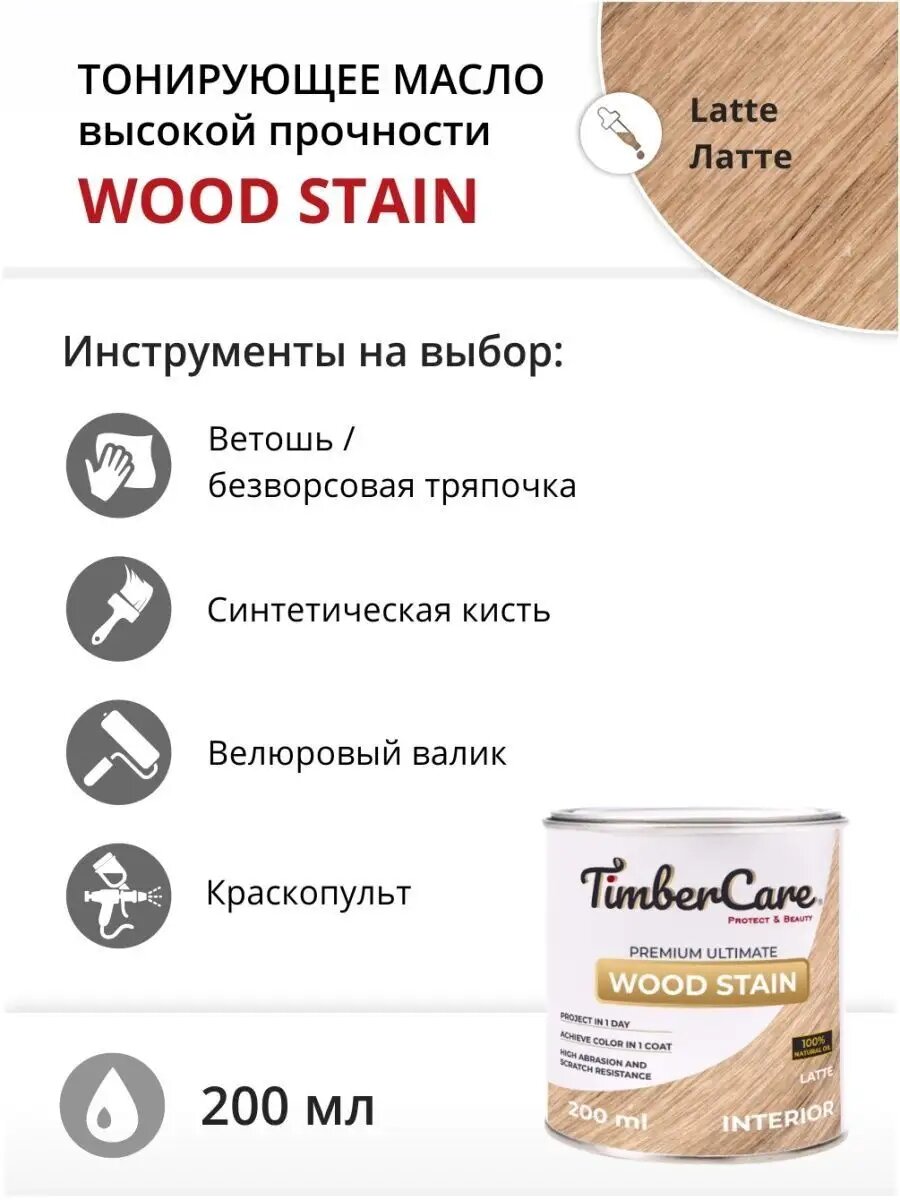 Масло для дерева и мебели TimberCare Wood Stain, быстросохнущие масла для дерева для внутренних работ, Латте/ Latte, 0.2 л