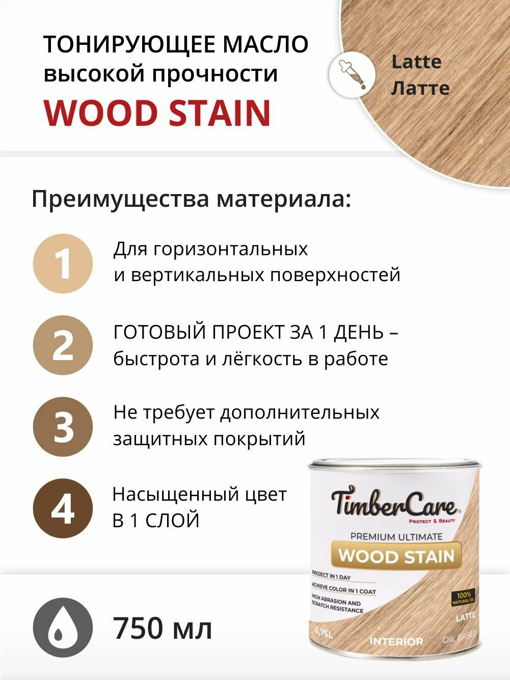Масло для дерева и мебели TimberCare Wood Stain, быстросохнущие масла для дерева для внутренних работ, Латте/ Latte, 0.75 л