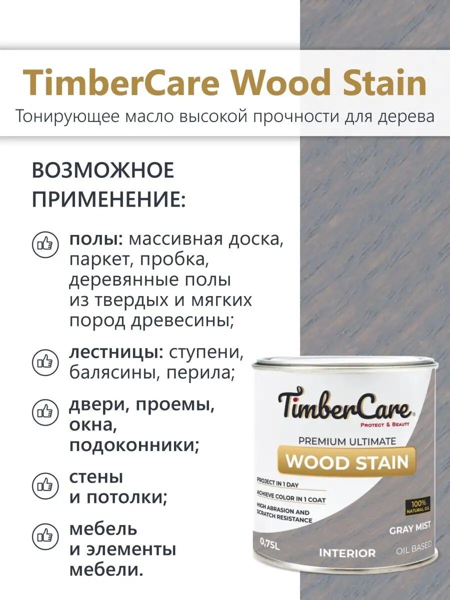 Масло для дерева и мебели TimberCare Wood Stain, быстросохнущие масла для дерева для внутренних работ, Серая дымка/ Gray Mist, 0.75 л