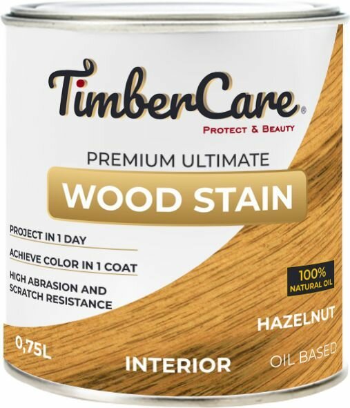 Масло для дерева и мебели TimberCare Wood Stain, быстросохнущие масла для дерева для внутренних работ, Лесной орех/ Hazelnut, 0.75 л