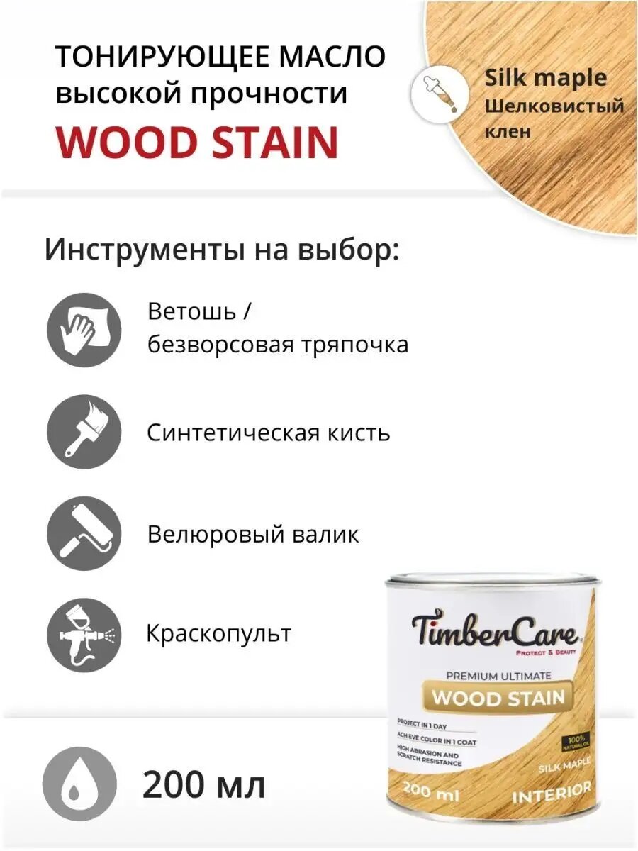 Масло для дерева и мебели TimberCare Wood Stain, быстросохнущие масла для дерева для внутренних работ, Шелковистый клен/ Silk Mapple, 0.2 л