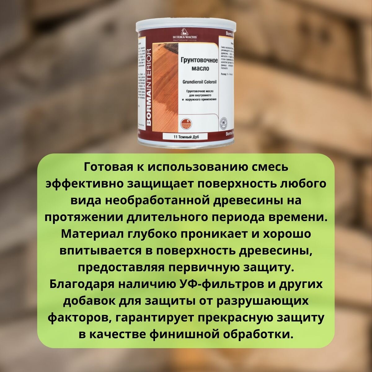 Масло грунтовочное BORMA GRUNDIEROIL для обработки древесины для наружных и внутренних работ 1л 98 Камень 3910pt98 декоративная пропитка / морилка