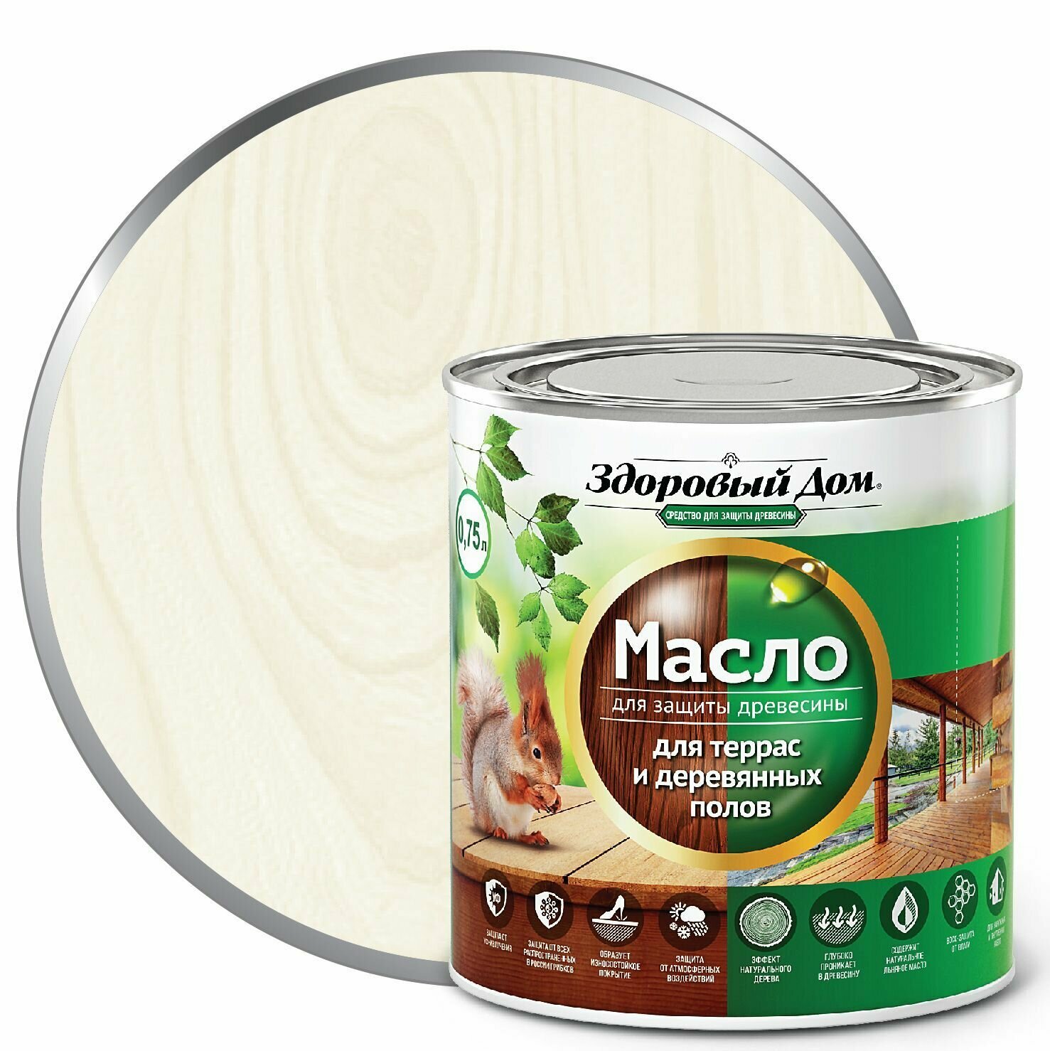 Масло деревозащитное Здоровый дом для террас и деревянных полов 0,75 л, белый