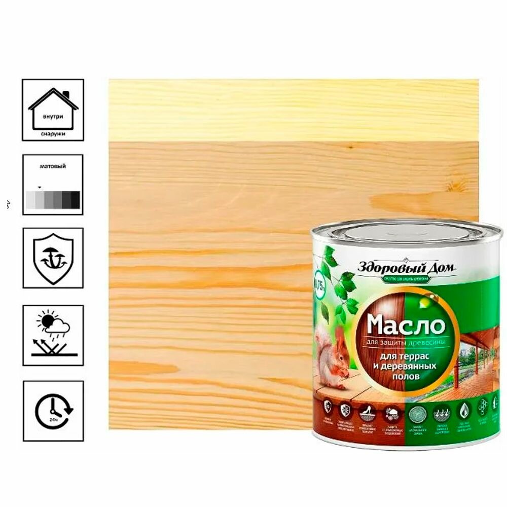 Масло деревозащитное Здоровый дом для террас и деревянных полов 0,75 л, бесцветный