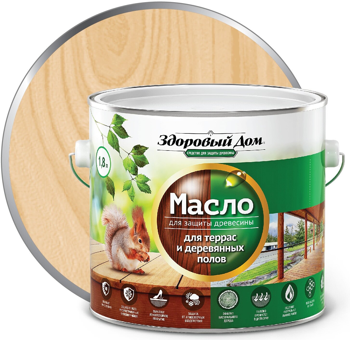 Масло деревозащитное Здоровый дом для террас и деревянных полов 1,8 л, дуб
