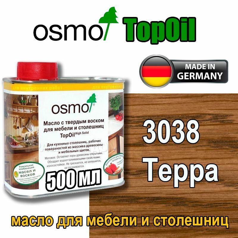 Масло Osmo с твердым воском для мебели и столешниц TopOil, 3038 Терра, 0,5 л
